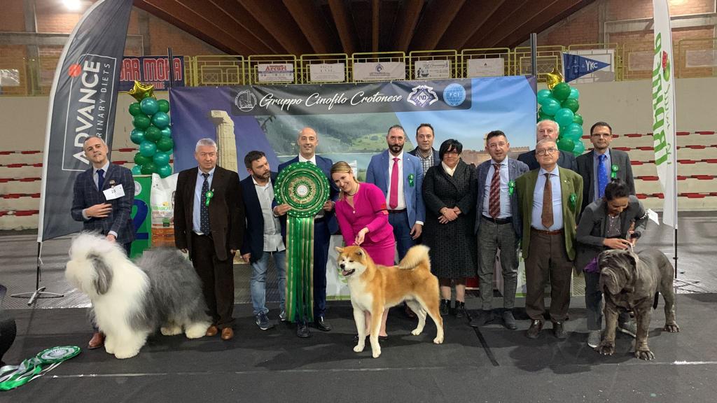 La tappa cinofila ha visto concorrere 115 diverse razze, passate al vaglio delle attente valutazioni degli esaminatori che ha portato sul podio più alto: un meraviglioso esemplare di Akita, seguito da altri due magnifici soggetti, un Old English SheepDog, e un imponente Mastino Napoletano, durante il Best in Show giudicato da Mariano Di Chicco, durante il quale è stato inserito un premio speciale, al primo classificato, “memorial Vincenzo Bassano”, per onorare la memoria di uno dei padri fondatori del gruppo cinofilo crotonese e pioniere della cinofilia del nostro territorio.