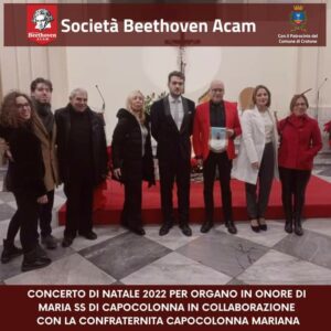 Mons. Alessandro Saraco , Rettore e Parroco della Basilica ha dato il benvenuto ai presenti, seguito dai saluti dell’avv.Federico Ferraro, Priore del sodalizio mariano e del Prof Fernando Romano, direttore della Società Beethoven Acam.