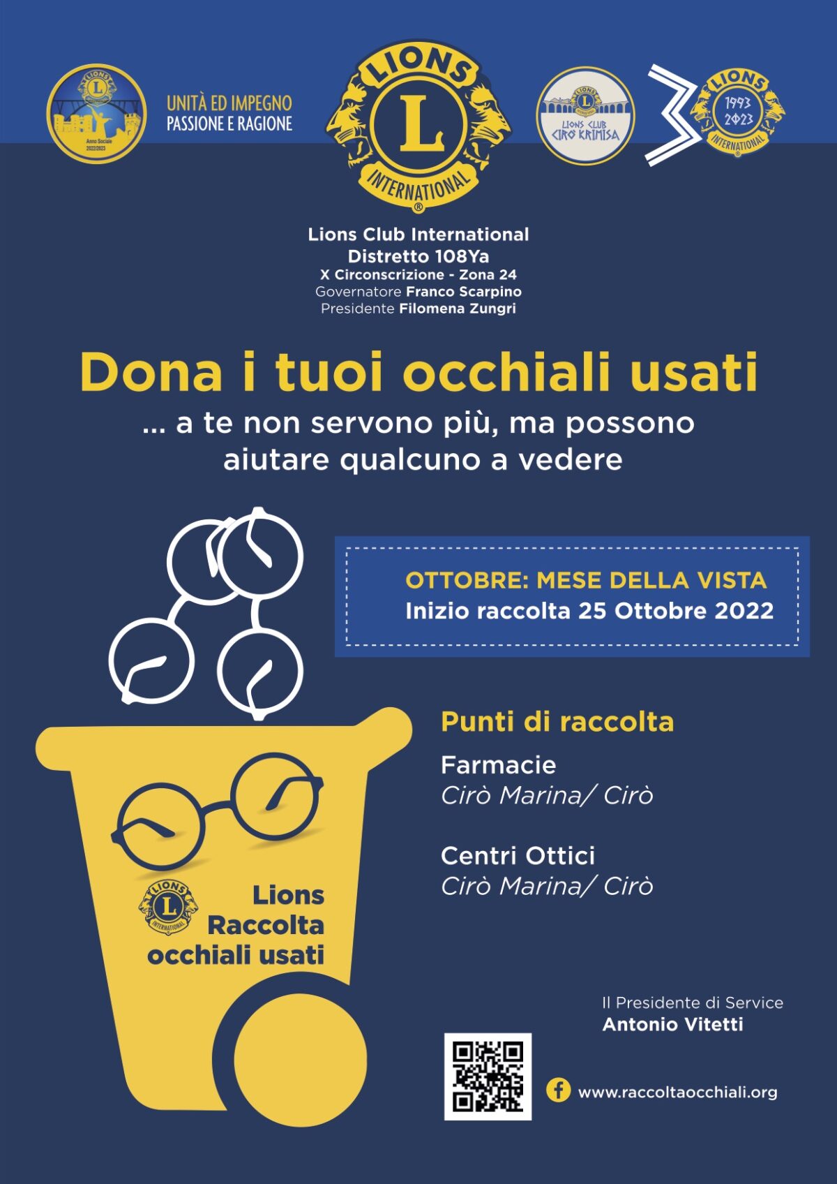 L’obiettivo di questo anno in particolare è quello di raccogliere in tutta Italia almeno 20.000 paia di occhiali e di incentivare le donazioni al centro di raccolta. Il Lions club ha partecipato, come negli anni scorsi, all’acquisto dei panettoni natalizi e delle colombe pasquali, come club sostenitore. Inoltre, la coordinatrice distrettuale, Lea D’Agostino, ha incentivato la raccolta invitando i club a scendere nelle piazze con gazebo e contenitori in due giornate del mese di febbraio interamente dedicate a questo service. A Cirò Marina sono stati raccolti oltre 200 paia di occhiali tra nuovi e usati, grazie alla collaborazione delle Farmacie Librandi, Malena, la Comunale, tenuta dalla dottoressa Francesca Scigliano e degli Ottici Parrilla, Licastro, Liotti e Astorino, a cui vanno i più vivi ringraziamenti del Lions Club. Un ringraziamento particolare all’Azienda Centro Style SPA di Varese che anche quest’anno ha inviato al Lions Club Cirò Krimisa una sostanziosa quantità di occhiali nuovi. Grazie di cuore ai cittadini di Cirò Marina per il loro contributo e al socio Lion Antonio Vitetti che da tanti anni cura in tutte le sue parti la realizzazione di questo service dal grande valore umanitario. (Mariolina De Franco)