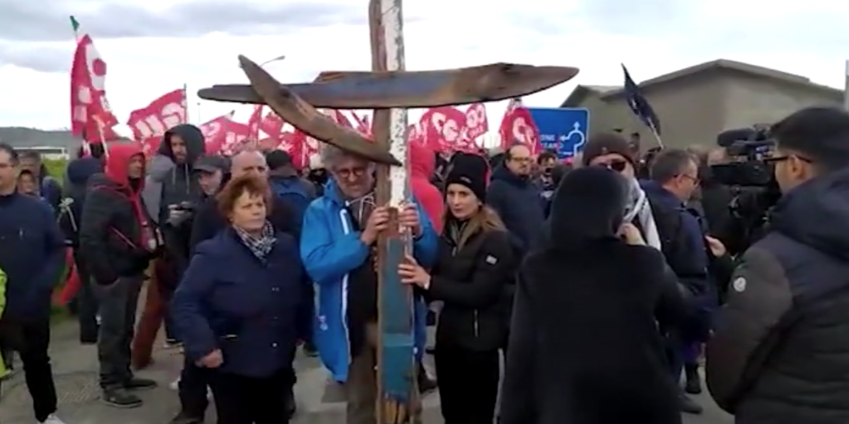 Dietro la croce realizzata con i legni della barca che si è infranta su una secca, ci sono almeno 5.000 persone provenienti da tutto il centro sud ed anche da regioni del nord.