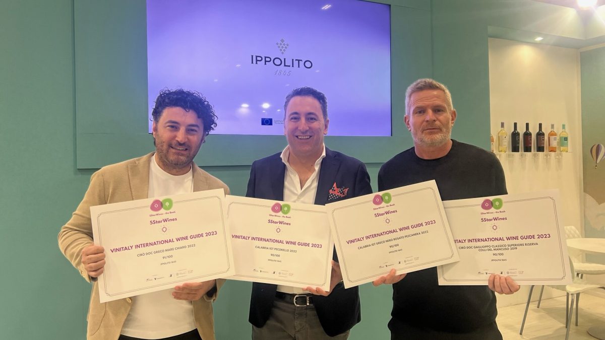 Un nuovo importantissimo traguardo per la cantina “Ippolito 1845”, che chiude l’edizione 2023 del Vinitaly con un bilancio estremamente positivo, tra grandi numeri e grandi successi: accanto al premio più prestigioso della Fiera di Verona (il premio “Angelo Betti – Benemeriti della viticoltura”, conseguito in apertura di kermesse dal Vicepresidente Paolo Ippolito), la più antica Azienda vitivinicola calabrese riesce infatti a conquistare anche quattro posti nel “5StarWines”, entrando appunto con quattro etichette nella “Vinitaly International Wine Guide 2023”, l’autorevole guida da 565 vini del Vinitaly.