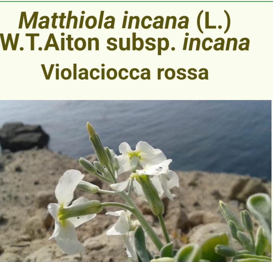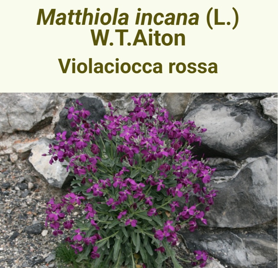 Le impreziosite di specie rare e autoctone di notevole importanza da salvaguardare come la Matthiola incana (L.) R. Br.( Violacciocca rossa), e la specie più rara di colore bianco: la Matthiola incana (L.) W.T. Aiton Subsp. incana le cui api ricavano un ottimo miele, abbarbicata alle rocce strapiombanti, sottoposta alla furia dei venti. Pianta protetta dal L. R. 06/04/2000, n. 56 e annotata nelle “Norme per la conservazione e la tutela degli habitat naturali e seminaturali, della flora e della fauna selvatiche”, compare nell’allegato A tra le “specie animali e vegetali, la cui conservazione può richiedere la designazione di “SIR” (Siti di. Importanza Regionale ). Dai fiori si distilla un’essenza usata in profumeria. I semi vengono considerati afrodisiaci. Un infuso dei fiori mischiato a vino si dice che abbia effetto di antidoto contro i morsi velenosi. Contiene Glucosidi, glucosinati, acidi organici ( linoleico, ferulico, sinapico) flavonoidi (antocianine, antocianidine ), cheirantina, cheirolina. I frutti sono silique compresse . Si tratta di specie di probabili origini tirreniche, si sarebbe poi spontaneizzata all’incirca in tutti i Paesi europei che si affacciano al bacino del Mediterraneo. In Italia si trova, allo stato spontaneo, sui litorali tirrenici, ionici e adriatici (ad eccezione della riviera romagnola), nelle isole maggiori e minori, rinvenuta in Friuli V. G. e naturalizzata in Veneto e Molise. Matthiola fu il nome che diede a questo genere Charles Plumier, in onore del botanico e medico senese Pietro Andrea Mattioli, morto di peste a Trento nel 1577. Lungo i pendii delle mura del castello trovano il loro habitat anche altre importanti piante selvatiche come: