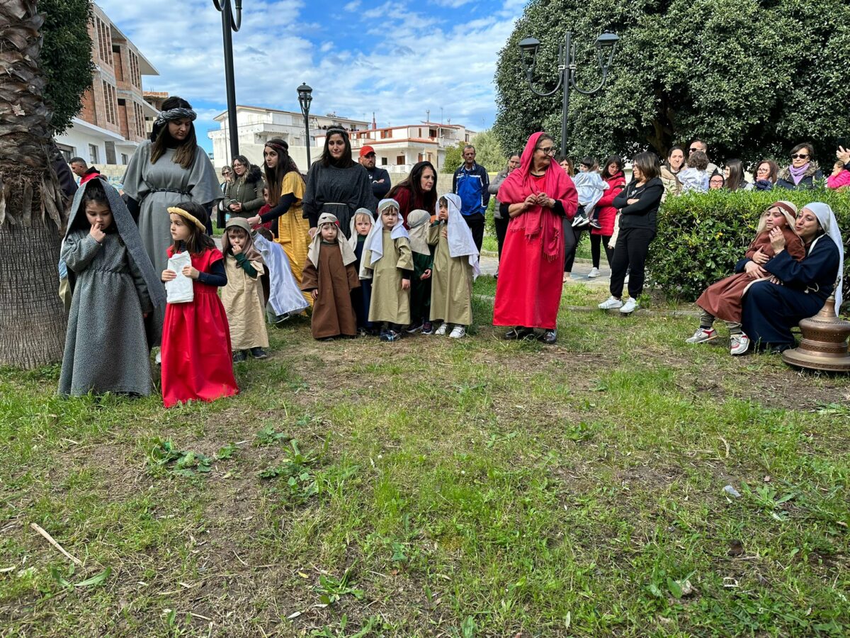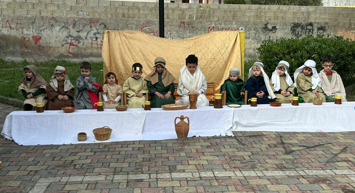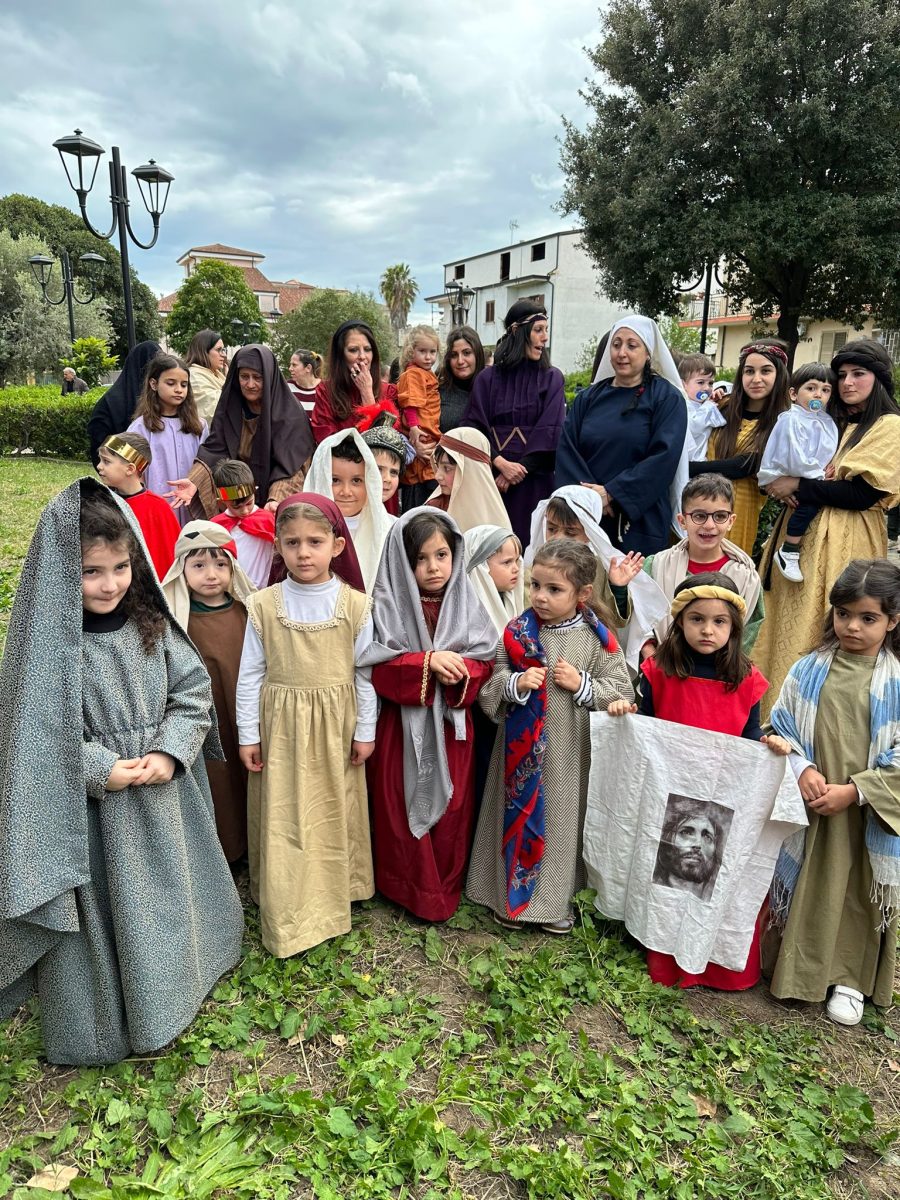 La rappresentazione è stata resa possibile grazie al grande impegno dei bambini che hanno cercato a loro modo di capire il mistero della Passione di Cristo,è stato spiegato in maniera semplice ai bambini dice la Dirigente la sofferenza di un uomo buono che si è sacrificato per gli uomini. I bambini spiega la Dirigente comprendono molto di più di quanto noi pensiamo, e abbiamo risposto in maniera molto semplice alle domande dando sostegno a quella che è la fede. La rappresentazione si è svolta anche grazie all’impegno delle meravigliose maestre che hanno fatto un lavoro eccezionale, alle mamme che hanno dato la loro disponibilità e alla Dirigente che è sempre ricca di nuove iniziative.