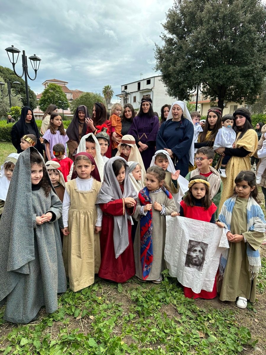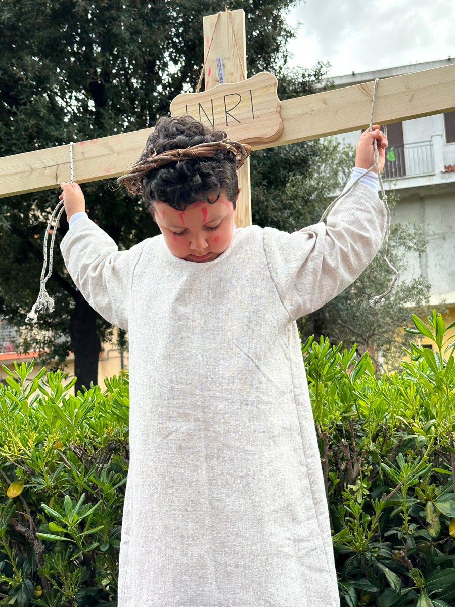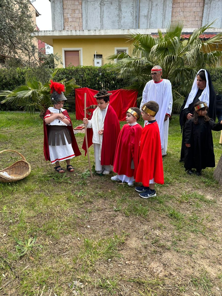 La rappresentazione è stata resa possibile grazie al grande impegno dei bambini che hanno cercato a loro modo di capire il mistero della Passione di Cristo,è stato spiegato in maniera semplice ai bambini dice la Dirigente la sofferenza di un uomo buono che si è sacrificato per gli uomini. I bambini spiega la Dirigente comprendono molto di più di quanto noi pensiamo, e abbiamo risposto in maniera molto semplice alle domande dando sostegno a quella che è la fede. La rappresentazione si è svolta anche grazie all’impegno delle meravigliose maestre che hanno fatto un lavoro eccezionale, alle mamme che hanno dato la loro disponibilità e alla Dirigente che è sempre ricca di nuove iniziative.