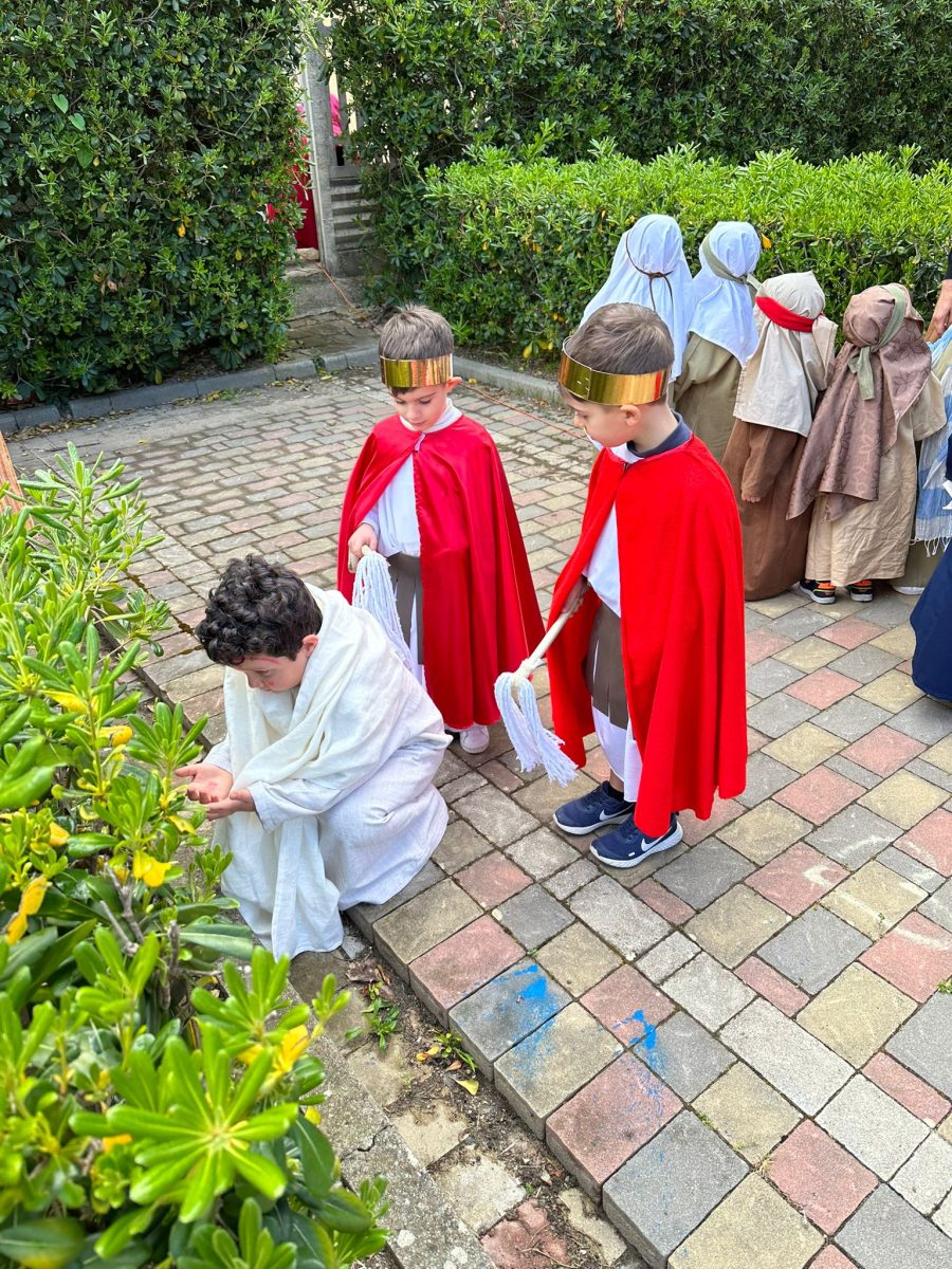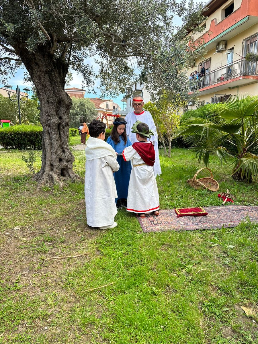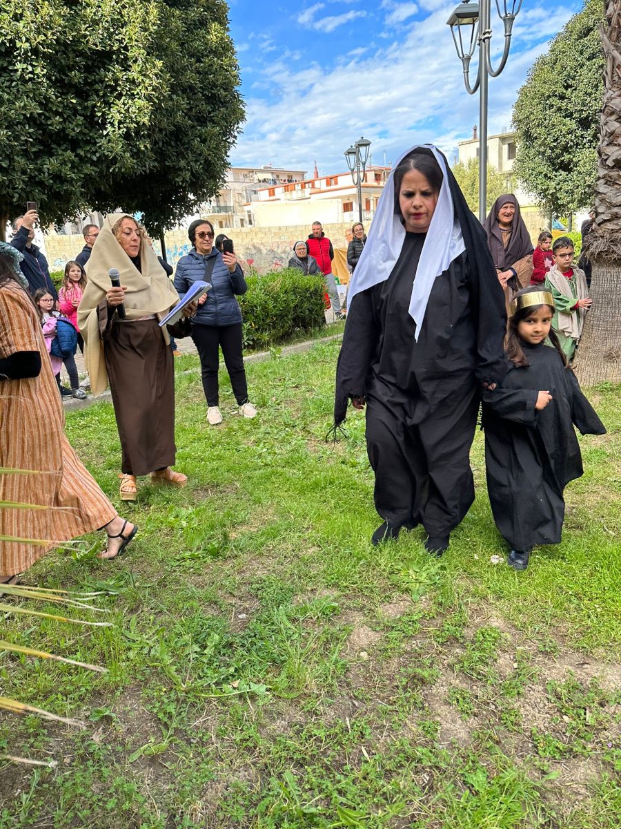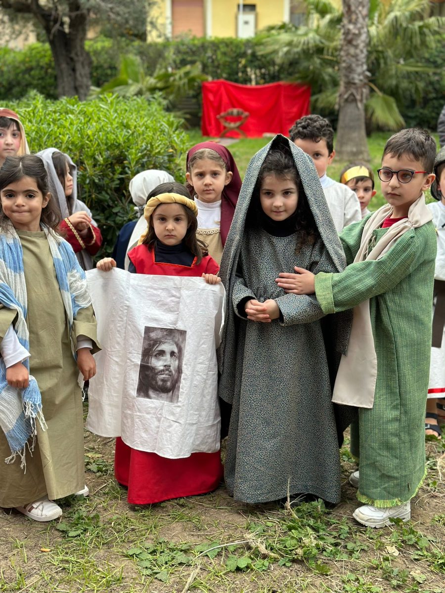 La rappresentazione è stata resa possibile grazie al grande impegno dei bambini che hanno cercato a loro modo di capire il mistero della Passione di Cristo,è stato spiegato in maniera semplice ai bambini dice la Dirigente la sofferenza di un uomo buono che si è sacrificato per gli uomini. I bambini spiega la Dirigente comprendono molto di più di quanto noi pensiamo, e abbiamo risposto in maniera molto semplice alle domande dando sostegno a quella che è la fede. La rappresentazione si è svolta anche grazie all’impegno delle meravigliose maestre che hanno fatto un lavoro eccezionale, alle mamme che hanno dato la loro disponibilità e alla Dirigente che è sempre ricca di nuove iniziative.