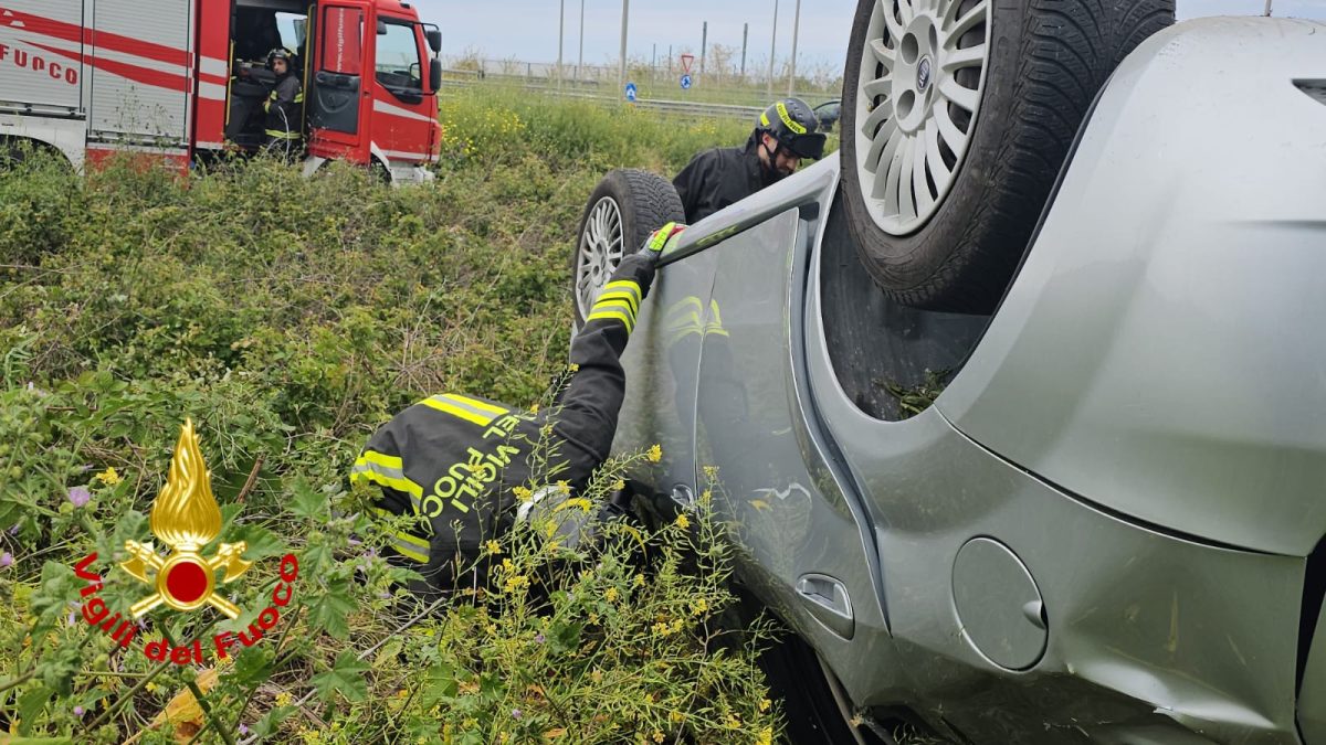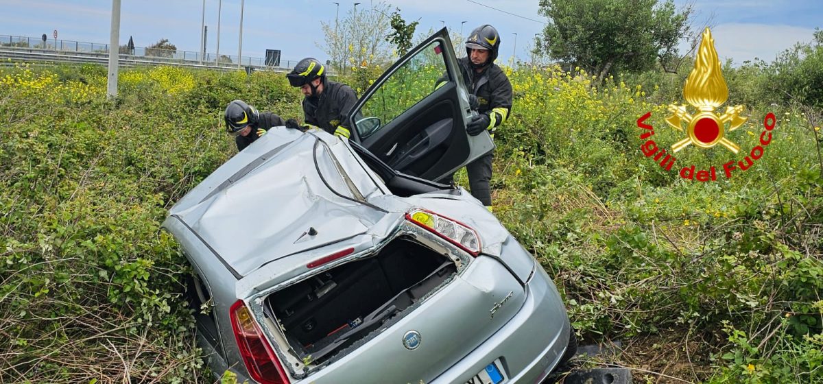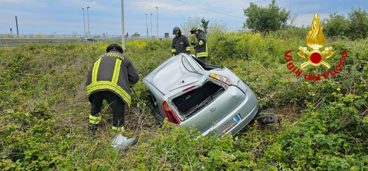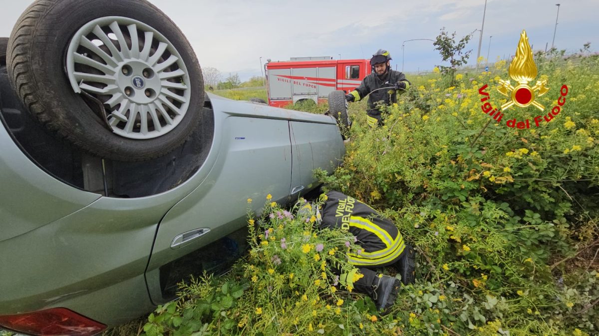 All’arrivo sul posto vi era una sola autovettura, una Fiat Grande Punto con una persona all’interno finita fuori strada capovolgendosi.