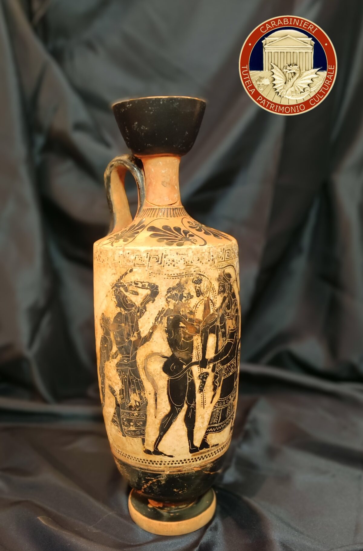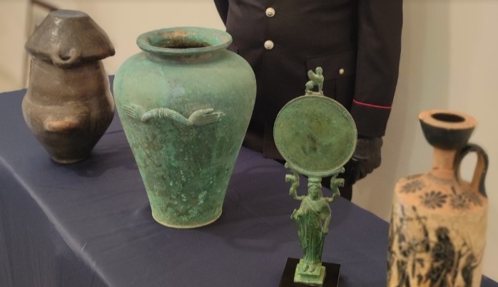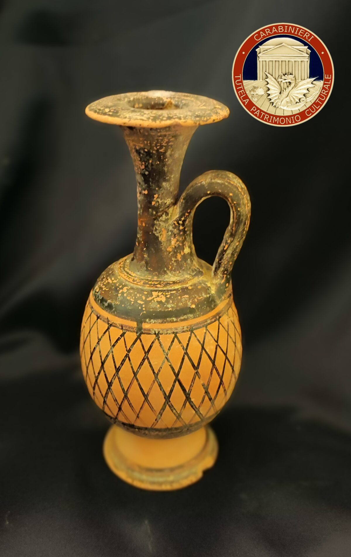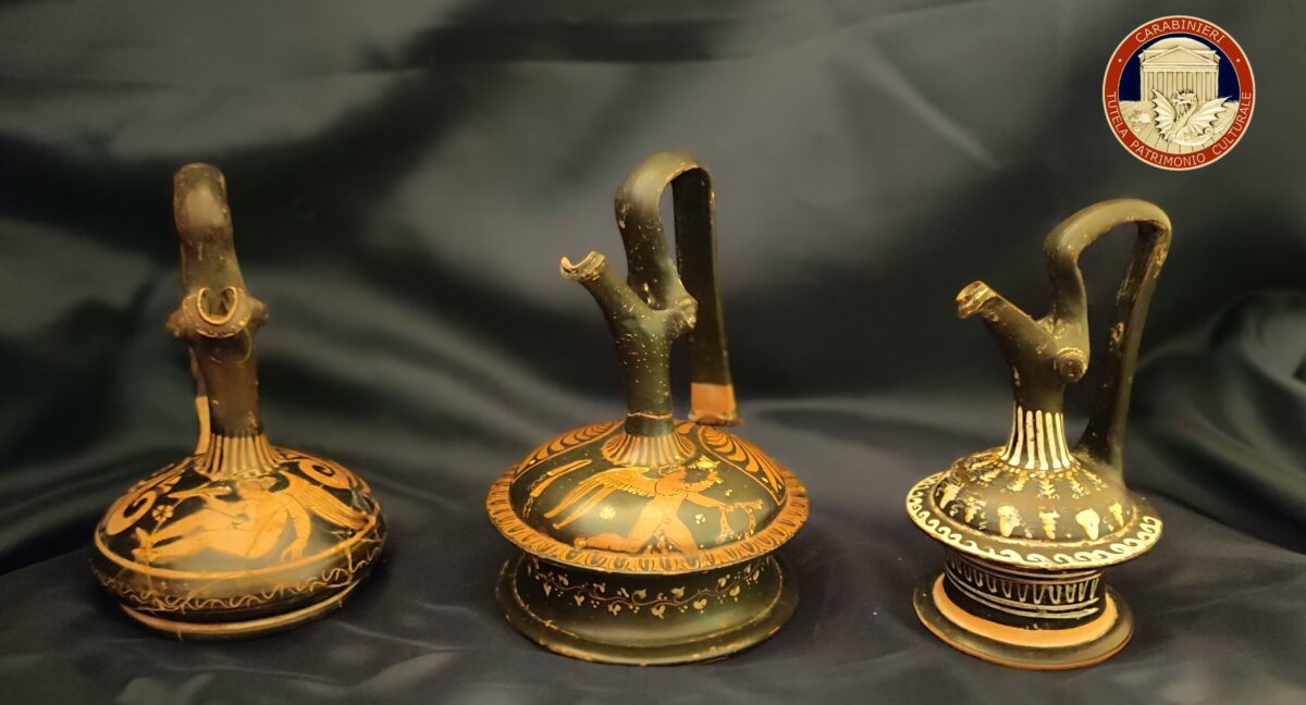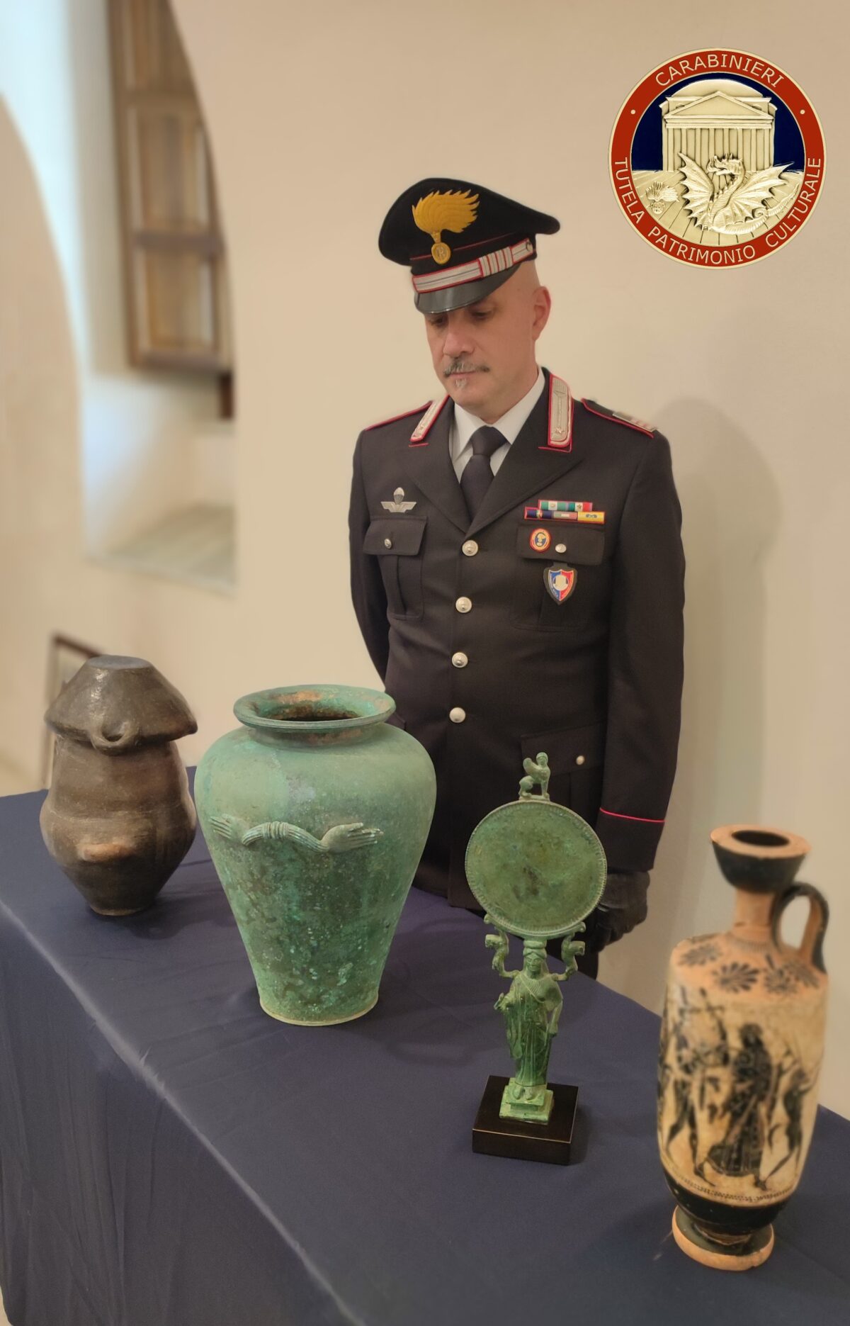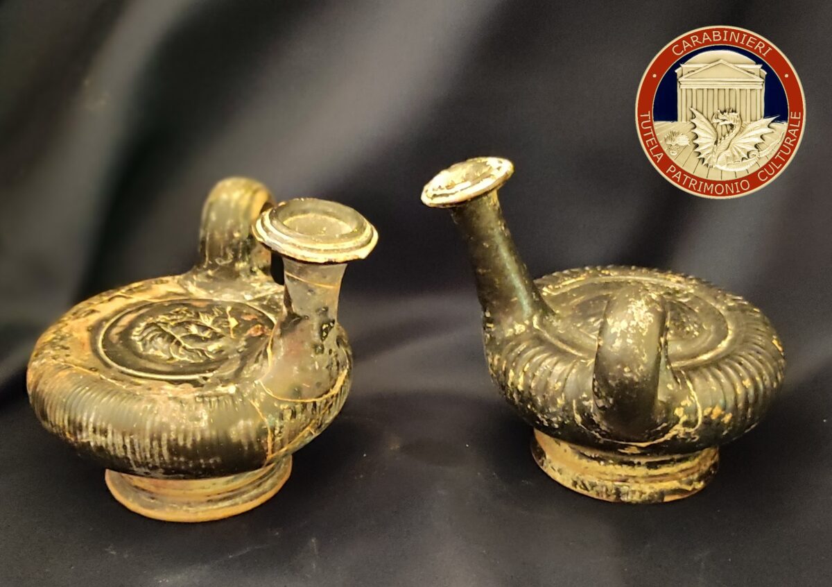 Inoltre, sono stati esposti anche importantissimi reperti archeologici etruschi, recuperati nell’ambito della stessa attività investigativa, che saranno restituiti ai musei che la Direzione Generale del Ministero della cultura individuerà in relazione alla loro origine, consistenti in:
