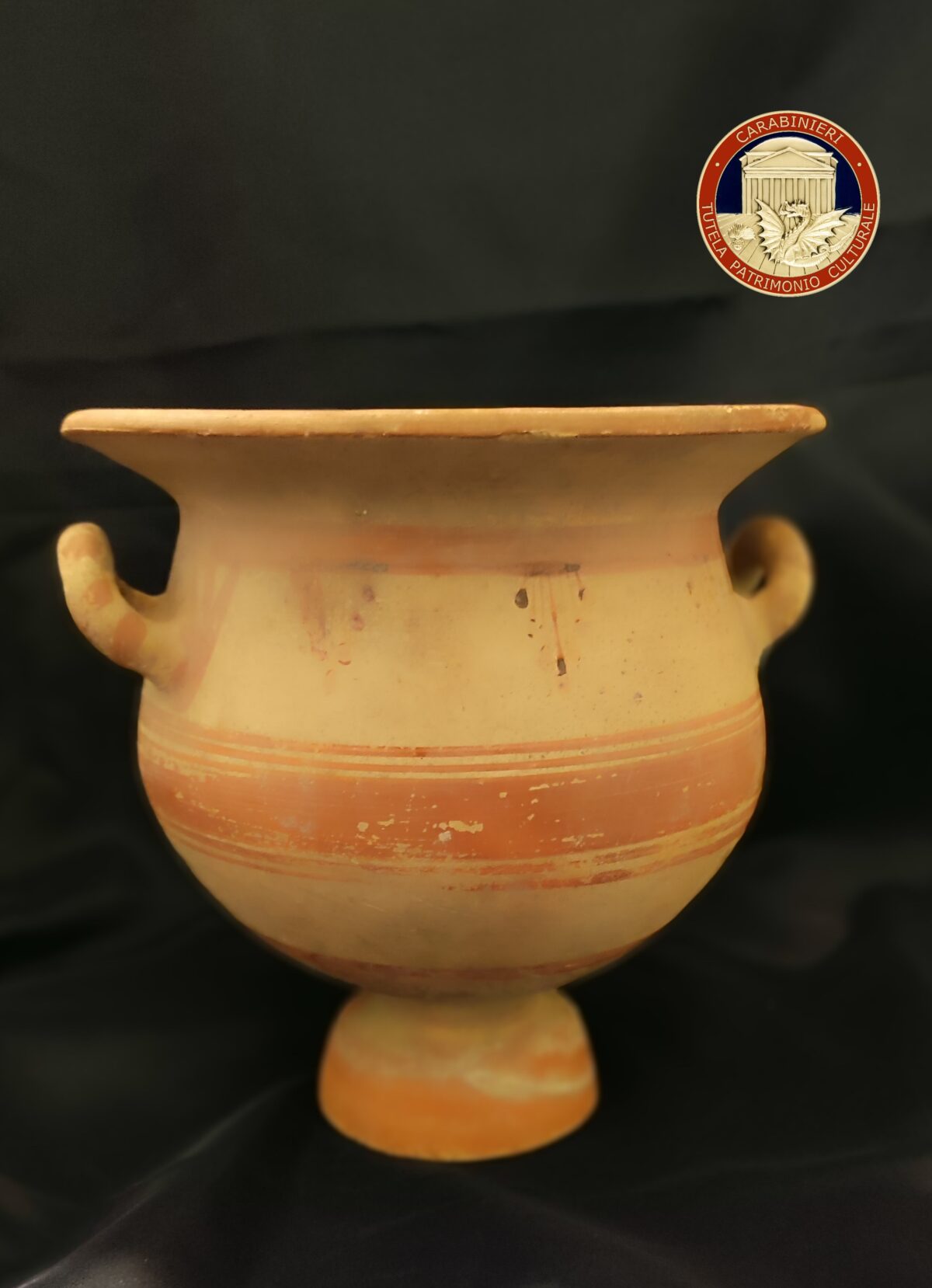 Gli straordinari reperti archeologici restituiti, di ingentissimo valore sia storico-culturale, sia economico, sono stati rintracciati nel contesto di una complessa attività d’indagine dei Carabinieri del Nucleo T.P.C. di Cosenza che ha acclarato, inequivocabilmente, l’esistenza di un vasto traffico su scala nazionale e internazionale – con ramificazioni in Gran Bretagna, Francia, Germania e Serbia – di reperti archeologici provenienti da scavi clandestini operati anche nei siti archeologici di “APOLLO ALEO” di Cirò Marina, “CASTIGLIONE DI PALUDI” del Comune di Paludi (CS) nonchè nell’area di “CERASELLO” del Comune di Pietrapaola (CS) e in tanti altri terreni privati del territorio delle province di Crotone e Cosenza.
