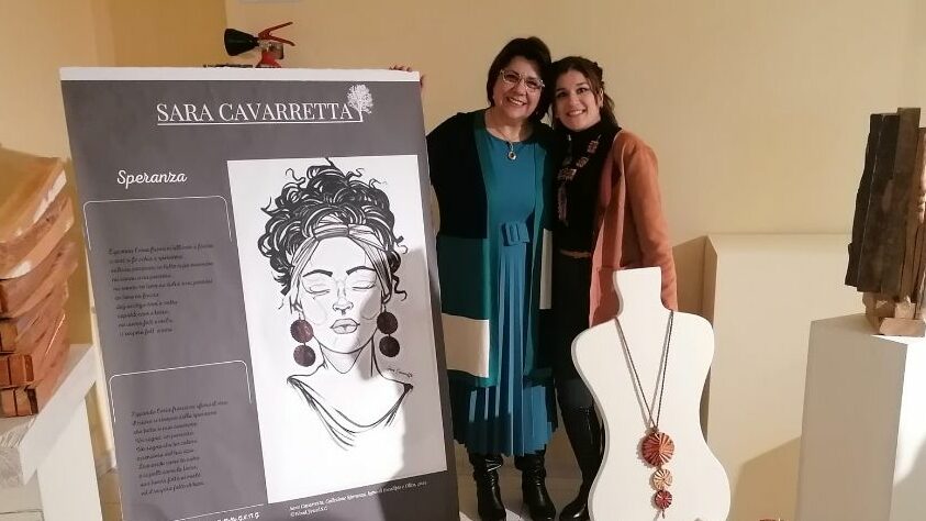“Quando una poesia diventa fonte di ispirazione, allora è chiaro che l’arte, tutta, facendo rete diventa essa stessa poesia.” Questo il pensiero della scrittrice ed editrice Francesca Gallello Gabriel Italo Nel Gòmez, nel commentare l’opera della giovane artista Sara Cavarretta che, ispirata dalla poesia “Speranza” ha sentito l’esigenza di realizzare una parure di gioielli intagliati a mano. La parure, formata da collana, orecchini, anello e bracciale, è realizzata interamente a mano e scolpito nel legno di castagno che nelle sue venature naturale cammina l’onda della lavorazione in essa scolpita che va a formare una conchiglia. Un effetto in cui appunto, la poesia e l’arte scultorea si abbracciano e diventano opera d’arte. Opere che la stessa Sara Cavarretta ha presentato in occasione di una mostra tenutasi a Cirò Marina. Laureata in Scultura Ambientale e Monumentale presso l’Accademia di Belle Arti di Catanzaro con 110 e lode, ha messo in mostra le sue opere in una mostra personale presso DESTA industrie di Catanzaro, da titolo “Venature” ha riscosso un notevole successo. Ha inoltre partecipato al “Premio Internazionale di Scultura Edgardo Mannucci”, XXIV edizione “Emergenze”, AMACI- giornata del contemporaneo, studio Naccarato e molti altri.