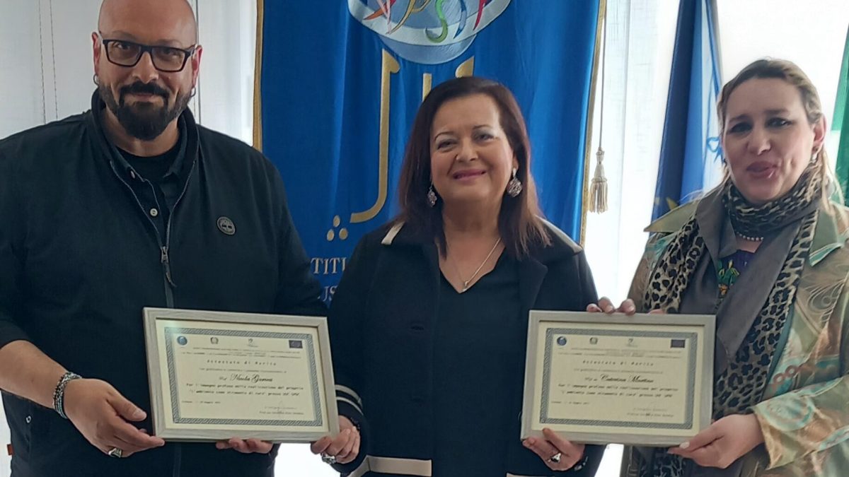 Si è svolta l’altra mattina nella presidenza dell’IPSIA A.M.Barlacchi, alla presenza della Dirigente scolastico prof.ssa Serafina Rita Anania, la cerimonia di consegna degli attestati di merito di riconoscimento, per l’impegno profuso nella realizzazione del Progetto: ”L’Ambiente come strumento di cura”, presso UOC SPDC di Crotone , ai docenti Caterina Martino e Nicola Garcea, a cui la Dirigente, ha riconosciuto l’alto valore artistico e culturale e le evidenti competenze per la realizzazioni delle opere realizzate insieme ai loro discendi presso il reparto di Psichiatria del “San Giovanni di Dio” di Crotone , dove sono state realizzate le opere. Entrare in un reparto e trovarsi a camminare in mezzo a opere d’arte… E’ quello che è successo lo scorso martedì nel reparto dell’U.O. di Psichiatria dell’Ospedale civile di Crotone. Protagonisti di questa straordinaria idea i docenti e alcuni alunni dell’ Istituto Professionale “Barlacchi”nell’ambito del progetto “Ambiente come strumento di cura” che ha visto collaborare in sinergia l’U.O. del nosocomio cittadino e il “Barlacchi” coordinati rispettivamente dal Primario Dott.ssa Letizia Tiano e dalla Dirigente Scolastica Prof.ssa Serafina Rita Anania. Il reparto ha visto una larga partecipazione di pazienti, visitatori, semplici curiosi, che hanno accolto come un vero e proprio evento la trasformazione del reparto in un luogo accogliente e sereno. Un processo di umanizzazione dell’importante reparto ospedaliero che non sarebbe stato possibile senza la competenza di due valentissimi insegnanti del “Barlacchi” la prof.ssa Catia Martino e il prof. Nicola Garcea. Due artisti già molto conosciuti e stimati professionisti dell’Istituto che hanno guidato gli alunni del “Barlacchi” e in particolar modo le ragazze dell’indirizzo “Produzioni industriali made in Italy” e dell’indirizzo “servizi per la sanità e l’assistenza sociale”. Giuliana Asteriti, Ilona Ivanova, Marta Rocca, Elisa Scuteri, Martina Serio, Maria Sicilia, Spatafora Laura, Domenico Urso, Rossana Vona e Desiree Criniti- hanno lavorato proficuamente alla realizzazione di questo innovativo progetto, non soltanto perché inserito nelle attività legate al P.C.T.O., quanto piuttosto perché mosse da una sensibilità e da una grazia che soltanto ragazzi della loro età possono esprimere, decorando le pareti con fiori e farfalle e paesaggi inebrianti come il mare. La Scuola Italiana, ha concluso la Dirigente Anania- prosegue nel segno della professionalità, del lavoro incessante, delle collaborazioni esterne e dei risultati in nome di un cambiamento che non rimanga solo sulla carta ma che si concretizzi nelle buone prassi didattiche.