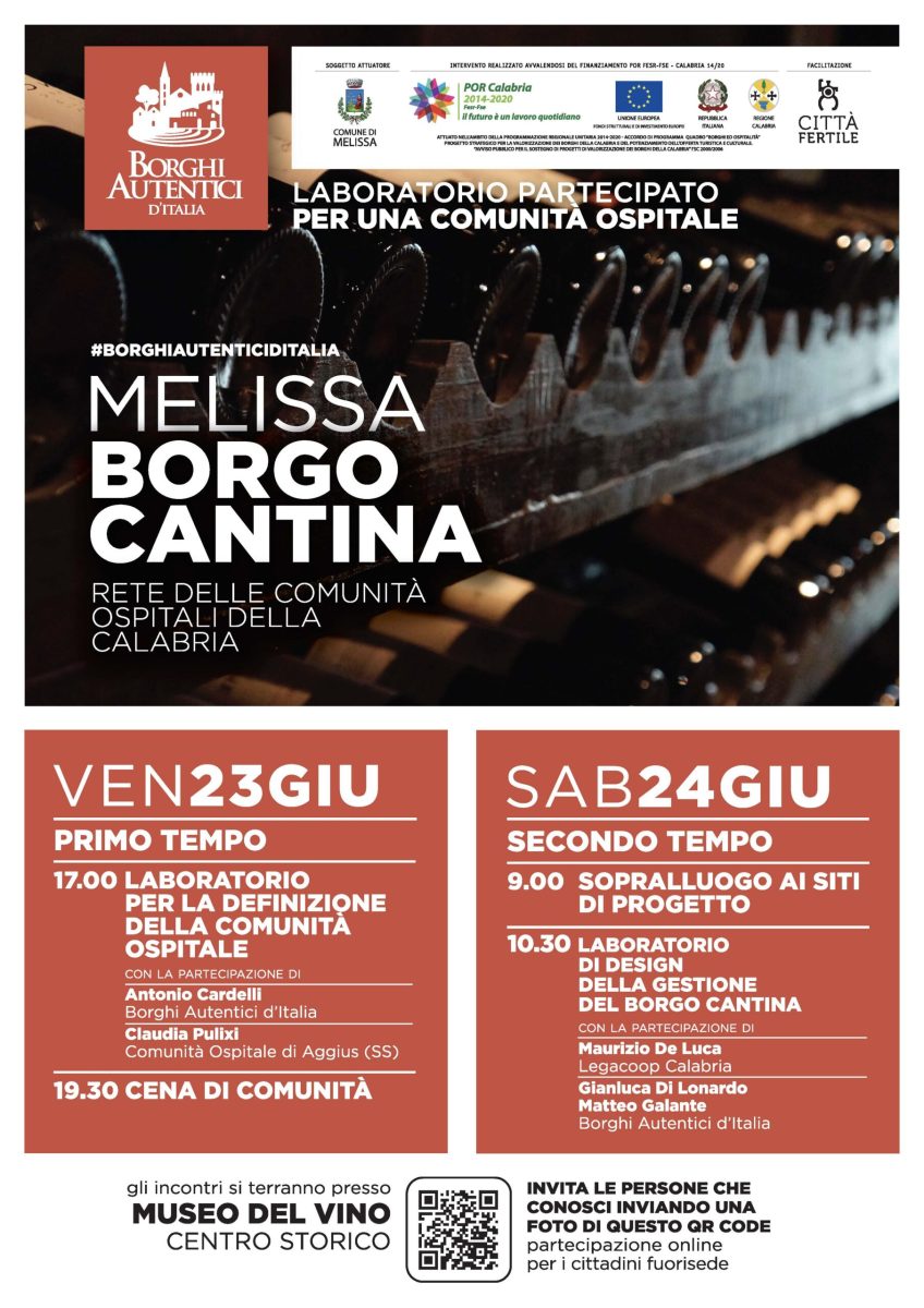 Borgo Cantina, il progetto del comune di Melissa volto alla riqualificazione urbana del centro storico del comune Jonico entra definitivamente nel vivo. Una serie di azioni ed eventi che puntano a tracciare nuove strade del turismo esperienziale coinvolgendo in modo attivo la comunità ospitale.