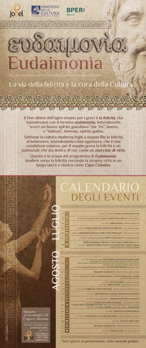 Il prossimo martedì 1 agosto alle ore 18:00, presso il Museo archeologico di Capo Colonna di Crotone, si terrà l’attesa presentazione del Partenariato mi Speciale Pubblico-Privato (PSPP) creato dalla Direzione regionale dei Musei della Calabria e il Consorzio Jobel. Questo partenariato mira a promuovere e valorizzare il Museo e il parco archeologico nazionale di Capo Colonna.