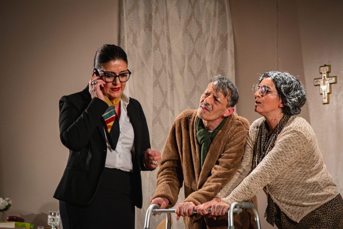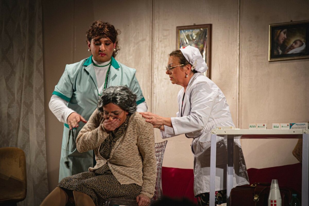 Inserita nella rassegna della stagione teatrale 2023-2024 organizzata dalla Fondazione Città di Cirò Marina, questa commedia brillante che coniuga l’amore per il teatro e l’attaccamento alla propria terra esplicitato nell’uso del dialetto, affronta con una misurata ironia, temi profondi ed attuali, che spingono alla riflessione, quali la solitudine dei nostri anziani, il rifiuto della società verso chi è debole, l’ossessione quasi spasmodica dell’attesa e la rabbia per le ingiustizie subite e le violenze gratuite, attraverso una serie di figure sfumate, ospiti della casa del buon Gesù, che il mondo ha dimenticato, ma che non si arrendono e lottano per affermare ognuno la propria essenza, raccontando una quotidianità fatta di ricordi sbiaditi, alterati dal tempo, tra gag e battute che suscitano ilarità e commozione. Senza mai perdere in brio e vivacità, i bravissimi attori, ciascuno calato perfettamente nel proprio ruolo, hanno regalato un tripudio di emozioni forti e di puro divertimento al pubblico intervenuto, la cui calorosa partecipazione ha reso la serata indimenticabile!
