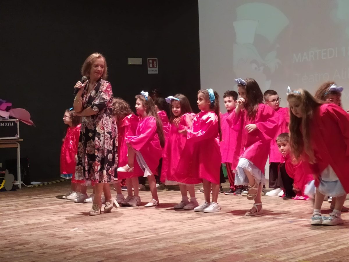 Come ha spiegato la Dirigente, introducendo la performance dei baby, “il paese delle meraviglie non è un luogo geografico, ma un territorio custodito dentro di noi…In questo mondo fatto di colori, immagini, giardini, di musica e di personaggi come il cappellaio matto che guarda il mondo da una prospettiva razionale e Alice che con il suo ingenuo stupore e il suo sguardo da bambina ci fa apprendere che è bello potere restare bambini e riuscire a guardare il mondo e tutte le sue follie con ironia e semplicità. In fondo siamo tutti Alice” Eterni sognatori di un mondo migliore fatto di incanto e disincanto.” Uno spettacolo fatto di musiche e recitazioni che hanno messo al centro i bambini, accompagnati dalle loro educatrici che hanno strappato applausi e qualche lacrima ai loro familiari. Al termine la tradizionale cerimonia della consegna dei “Diplomi” agli alunni uscenti della sezione “Girasoli” che dal prossimo anno siederanno nella prima classe della scuola primaria per una nuova avventura sulla strada della loro formazione. Infine lo scambio di auguri e foto di rito.