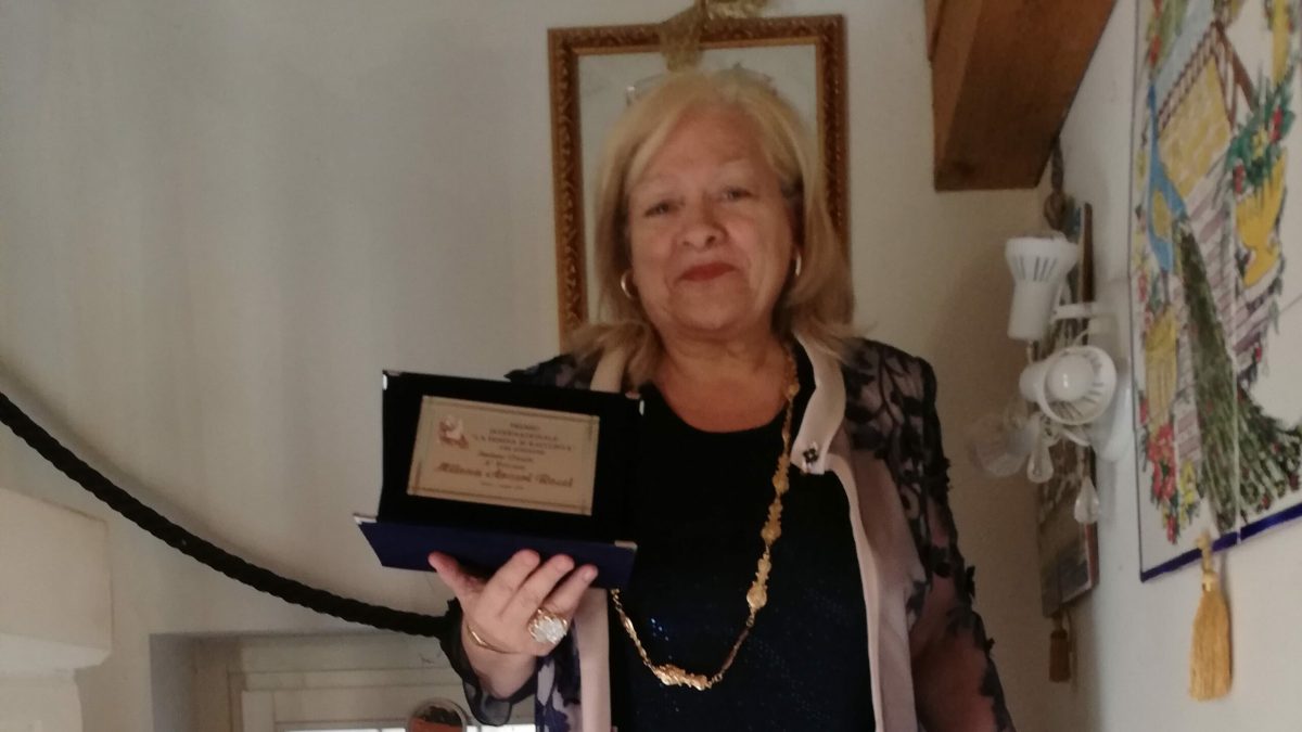 Il 1 giugno ultimo scorso, in Pesaro, al cospetto di una marea di persone, scrittori e poeti o aspiranti tali, viene premiata la nostra autrice per una raccolta di poesia che ha emozionato e coinvolto la giuria. Si tratta di elegie all’Universo, alla natura, sottolineando, ancora una volta, la bellezza della sua terra e del suo mare. La silloge comprende anche il rammarico espresso in versi che la gente non scriva più lettere, mentre codeste potrebbero essere conservate per sempre, recando il profumo di chi le invia e vincolando i sentimenti, anche quelli più intensi, ai fogli, per sempre.