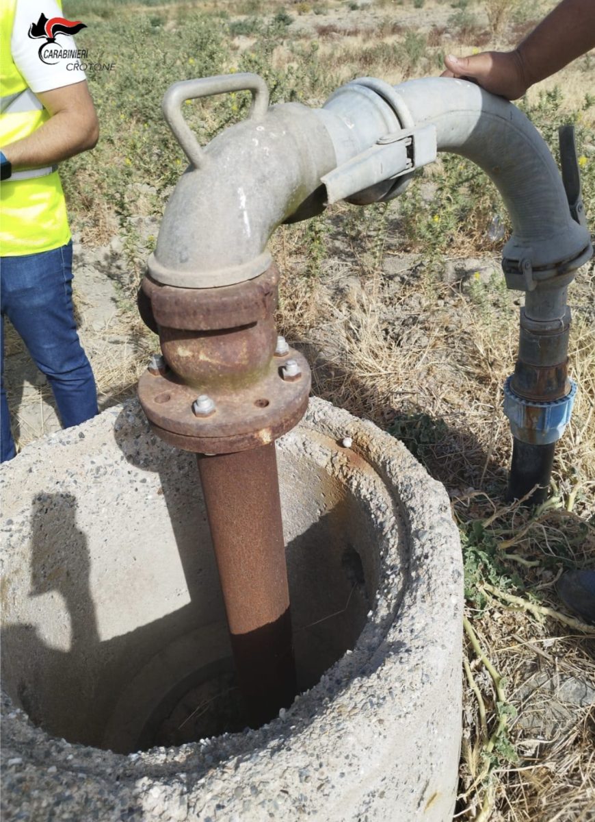 Nella mattinata del 2 luglio i militari della Stazione di Roccabernarda (KR), coadiuvati da personale del Consorzio di Bonifica della Calabria, nell’ambito di un servizio mirato, procedevano al deferimento di due soggetti, un 42enne di Petilia Policastro (KR) e una 65enne di Cutro (KR). Al primo viene contestato l’allaccio abusivo alla rete idrica, utilizzata per alimentare illegalmente la propria attività commerciale, mentre alla seconda denunciata viene contestato un innesto abusivo ad un idrante sito in un terreno nelle adiacenze della propria abitazione. Entrambi i deferiti non risultavano in possesso di regolare contratto idrico e gli allacci abusivi sono stati immediatamente interrotti.
