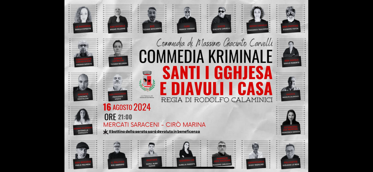 “Grazie all’amministrazione comunale di Cirò Marina per l’invito e l’organizzazione dell’evento. e grazie, in particolare, alla consigliera delegata, Virginia Marasco, per averci inserito nel cartellone teatrale estivo. La prevendita biglietti si svolge presso la Pro Loco di Ciro’ Marina, in piazza Diaz