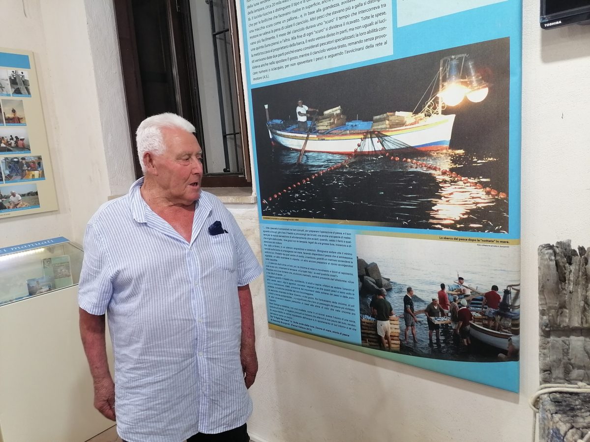 Ricordo, prosegue Scorpiniti, anche il suo entusiasmo per l’opera del Museo del Mare, dell’Agricoltura e delle Migrazioni, al quale ha contribuito con suoi attrezzi di lavoro e in particolare con quella lanterna degli anni Settanta, fabbricata in Germania, “che mi aveva conservato” e che per lui era particolarmente preziosa, perché aveva illuminato tante sue notti di pesca. L’estate scorsa è venuto in visita al Museo, con la figlia e la moglie Assunta; emozionato, davvero, di ritrovare la sua storia e ritrovarsi in molte foto, soprattutto nella grande immagine in cui appare intento alla lavorazione delle reti, di fronte al suo mare amato.