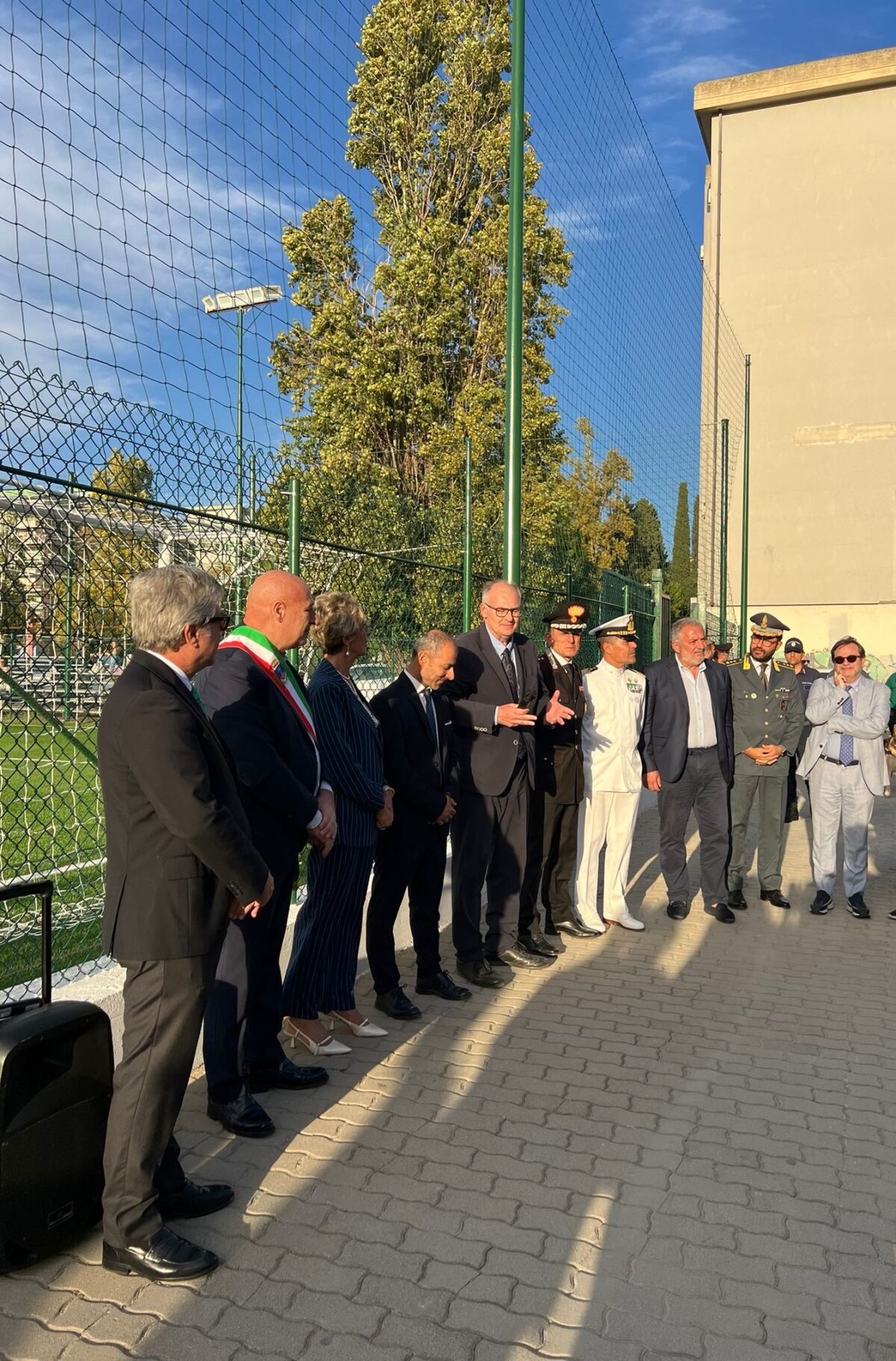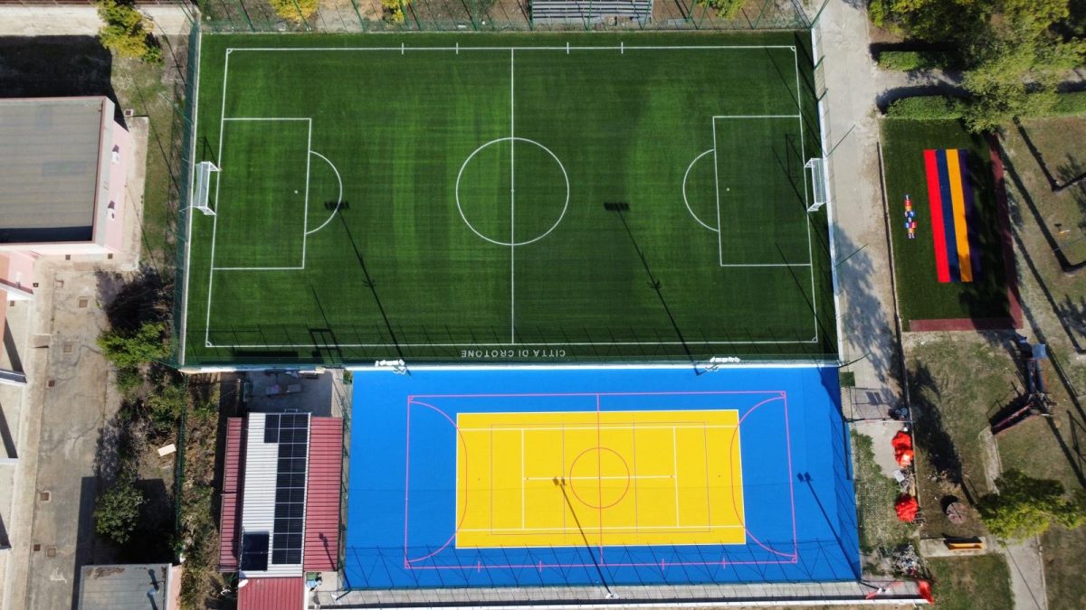 Nello specifico l’impianto inaugurato oggi,realizzato con il finanziamento PNRR – Inclusione e Coesione, consiste di un campo di calcio a 7 in erba sintetica, un campo polivalente da tennis e calcio a 5 in cemento, la realizzazione di uno spogliatoio.
