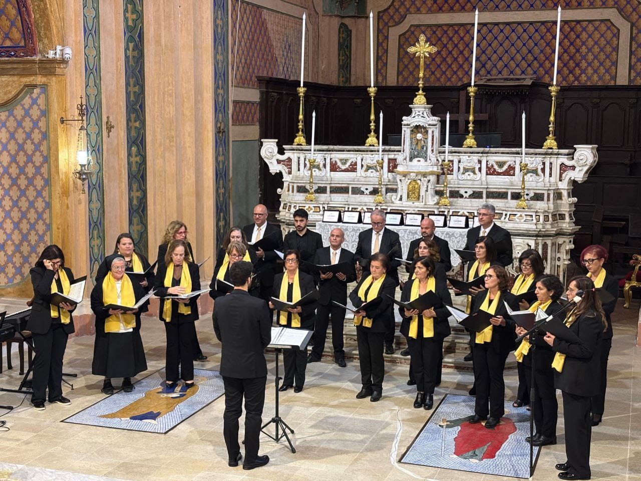 Ciascuno dei sei cori ha eseguito tre canti polifonici, mentre la Corale ha cantato tre delle polifonie particolarmente amate dal Presidente.