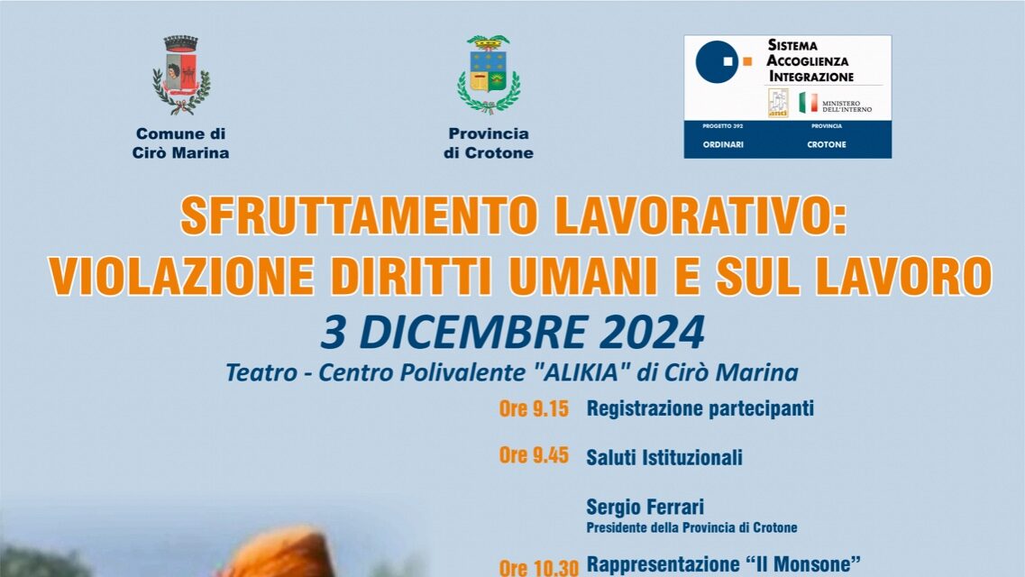 Convegno a Cirò Marina: “Sfruttamento lavorativo e violazione dei diritti umani” il 3 dicembre 2024
