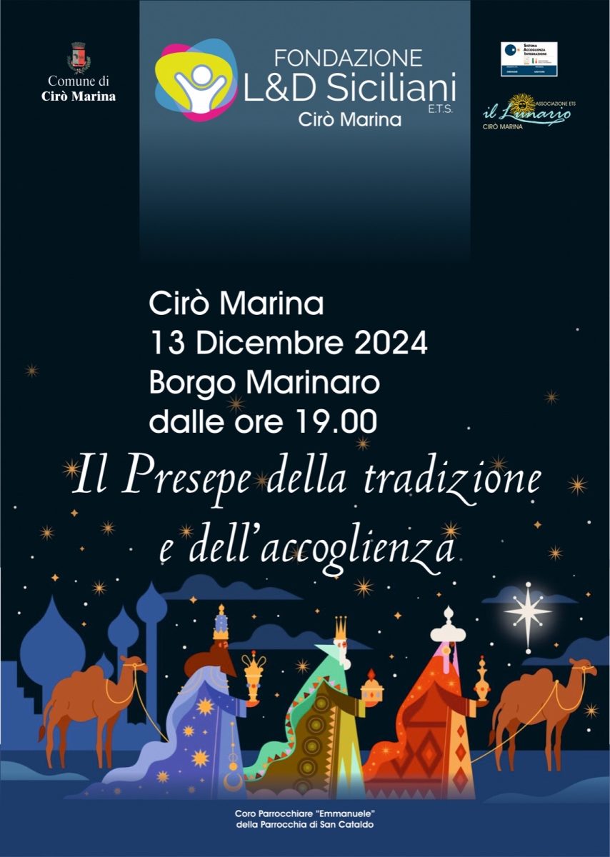 La magia del Natale si prepara a illuminare Cirò Marina con un evento unico che unisce tradizione e integrazione culturale: “Il Presepe della Tradizione e dell’Accoglienza”, organizzato dalla Fondazione Luigi e Domenico Siciliani ETS in collaborazione con il Comune di Cirò Marina, il Sistema di Accoglienza e Integrazione (SAI) della Provincia di Crotone, l’Associazione Il Lunario ETS e il Coro Parrocchiale “Emmanuele” della Parrocchia di San Cataldo.