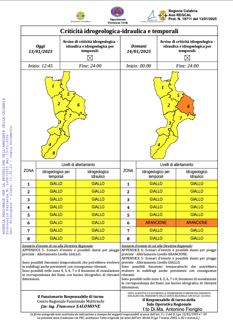 Secondo il bollettino della Protezione Civile Calabria, le criticità principali riguarderanno: