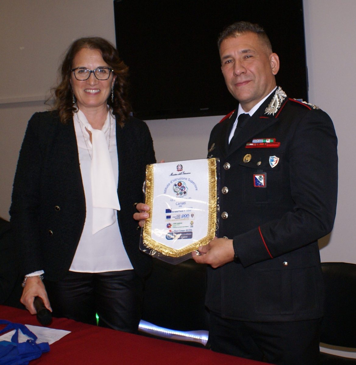 La scena è stata caratterizzata magistralmente dai ragazzi dell’ITI e dell’IPSSEOA, grandi protagonisti dell’appuntamento che, attraverso domande, riflessioni e poesie, hanno interloquito con il tenente colonnello.