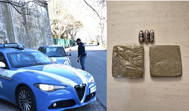 Gli agenti, nel corso del normale servizio di controllo del territorio, effettuavano un passaggio appiedato nel centro storico cittadino. Tipologia di servizio definito automontato e poliziotti di quartiere. Nel transitare in una delle piazze più frequentate dai residenti, hanno notato il giovane che, alla vista degli operatori, ha accelerato il passo con l’intento di eludere il controllo di polizia. Nella circostanza gli operatori, insospettiti, lo hanno prontamente raggiunto e bloccato, procedendo ad effettuare una perquisizione personale, che ha consentito di rinvenire tre involucri contenenti 20,43 grammi di marijuana.