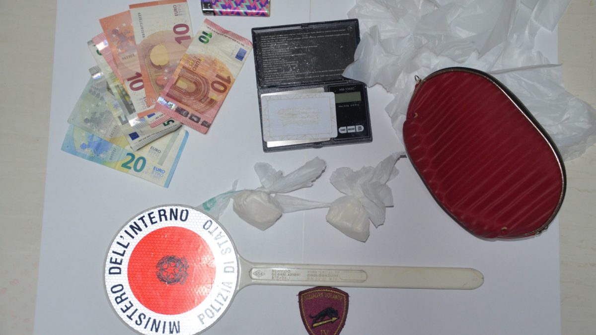 Nel corso della perquisizione venivano rinvenuti 38,32 grammi di sostanza stupefacente del tipo cocaina ben occultata all’interno di un borsello, un bilancino di precisione e del denaro contante pari a 75 euro, possibile profitto della vendita di alcune dosi dello stupefacente.