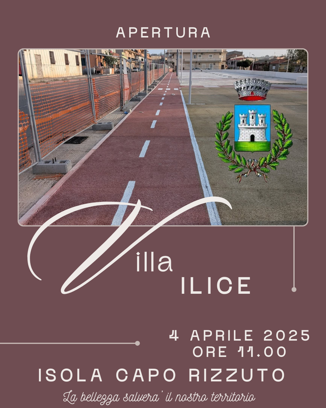 Grazie a un investimento di 1,3 milioni di euro, ottenuto attraverso i fondi di rigenerazione urbana del PNRR, l’area è stata trasformata in un luogo di aggregazione con piste ciclabili, aree relax, un parco giochi e spazi verdi, pensati per offrire a grandi e piccoli un ambiente ideale per il tempo libero. Un progetto voluto direttamente dal Sindaco Maria Grazia Vittimberga, che sin dal suo insediamento ha puntato tanto sulla riqualificazione di questo luogo. Abbiamo preferito i fatti e il lavoro alle parole e oggi possiamo essere orgogliosi di vedere Isola Capo Rizzuto crescere e migliorare, progetto dopo progetto. Abbiamo preso una città che era ai margini e l’abbiamo messa al centro dell’attenzione per un riscatto sociale, urbanistico e che rispecchia sempre più i canoni di una città. Villa Ilice è uno degli esempi lampanti in questo senso: non è solo un parco, ma l’ennesimo simbolo di una città che guarda avanti, come è già stato con tante altre opere donate alla comunità ed altre in corso che presto saranno fruibili. In centro come in periferia e sulle frazioni, cercando di non lasciare indietro nessuno. All’evento di apertura sono state invitate le scuole pubbliche e private del territorio.