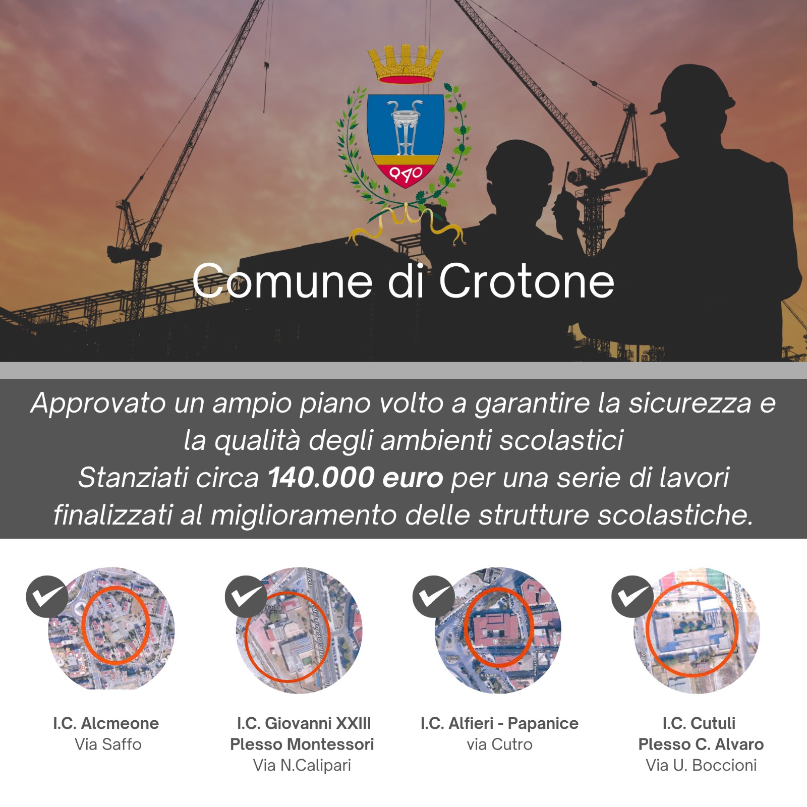 In particolare gli interventi riguarderanno il plesso “Corrado Alvaro” dell’I.C. Cutuli – Don Milani, il plesso “Montessori” dell’I.C. Rosmini – Giovanni XXIII e l’I.C. Alfieri – Papanice.