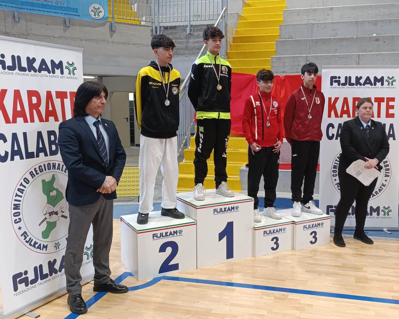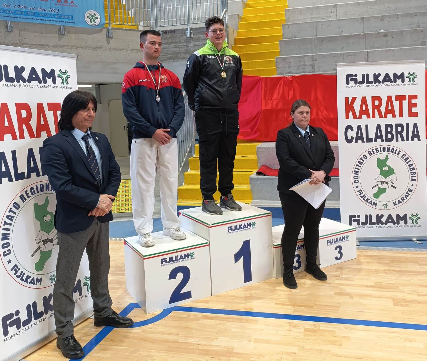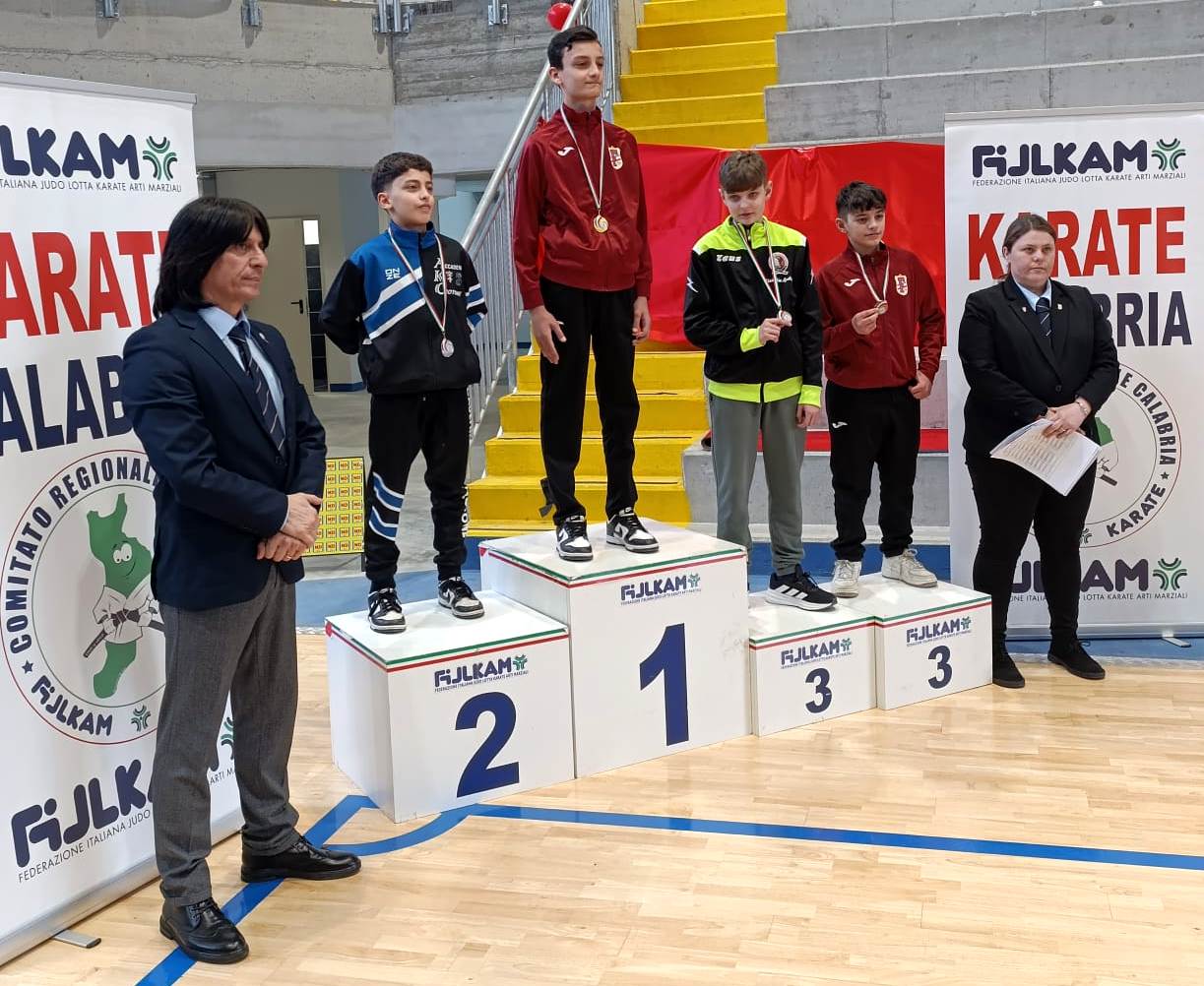 La scuola crotonese ASD Martial Kroton Ryu, con a bordo il tecnico e coach Carlo Bellino, ha preso parte alla gara schierando cinque atleti nella specialità Kumite, ottenendo ottimi risultati: Daniel Florian Damian (categoria -47 kg), al suo esordio competitivo, si è distinto con grinta e determinazione, conquistando un ottimo terzo posto e la medaglia di bronzo; Alessio Pio Garofalo (categoria -52 kg), anch’egli alle prime esperienze di gara, ha mostrato buone potenzialità, classificandosi quinto dopo aver disputato due incontri; Andrea Bisicchia, sempre nella categoria -52 kg, dopo una battuta d’arresto al primo incontro, ha saputo reagire con determinazione nei ripescaggi, salendo sul podio con un meritato terzo posto e la medaglia di bronzo; Cristiano Attilio Ioppoli (categoria -57 kg) ha dominato la sua categoria, vincendo tutti gli incontri e conquistando la medaglia d’oro e il titolo di campione regionale; Mario Di Fede (categoria +78 kg) ha replicato l’impresa, imponendosi sui suoi avversari e aggiudicandosi anch’egli la medaglia d’oro e il titolo di campione regionale.