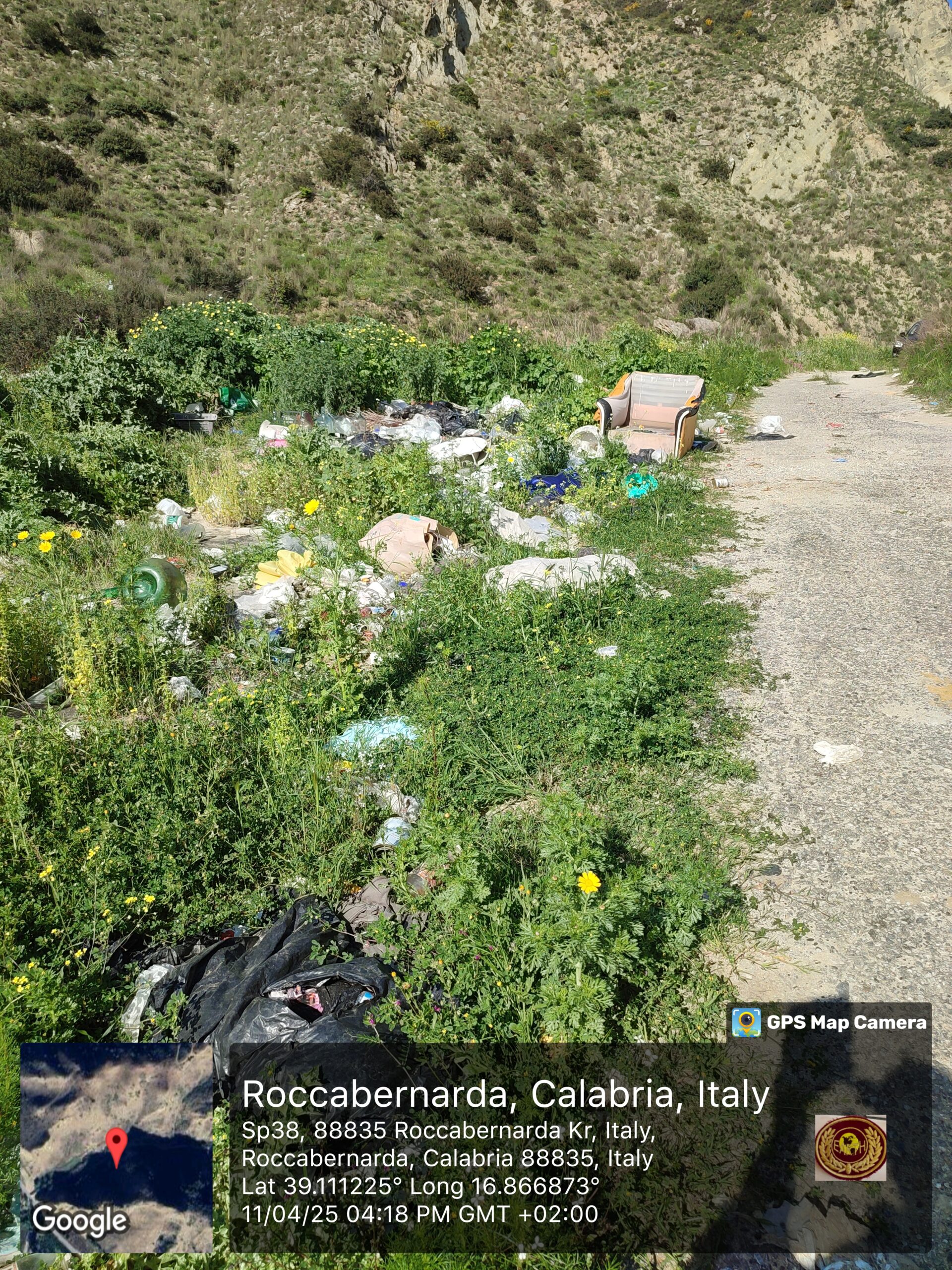 Nel territorio di Roccabernarda effettuavano dei rilievi in una zona utilizzata da ignoti a discarica di rifiuti di varie tipologie. Purtroppo questo sito è stato più volte segnalato agli uffici competenti ma senza ottenere, da parte di questi, nessun riscontro positivo.