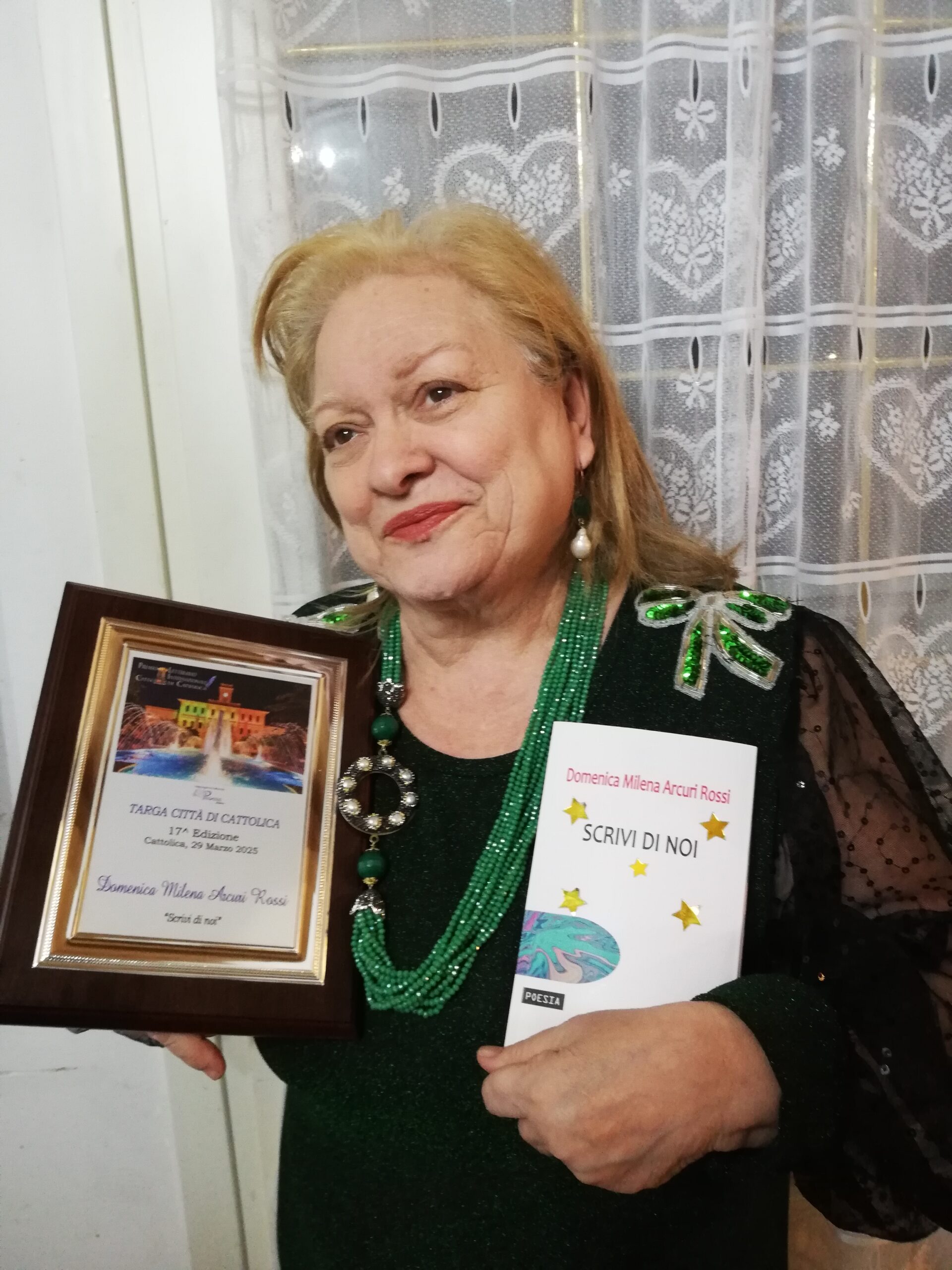 Nella serata del 29 marzo scorso, in Cattolica, la poetessa Domenica Milena Arcuri Rossi è stata premiata con la “Targa Città di Cattolica” al Premio Letterario Internazionale Città di Cattolica -Pegasus Literary Awards, definito dalla stampa come “l’Oscar della letteratura italiana”, a cui è possibile partecipare in diverse lingue, avendo ottenuto il patrocinio del Parlamento Europeo.