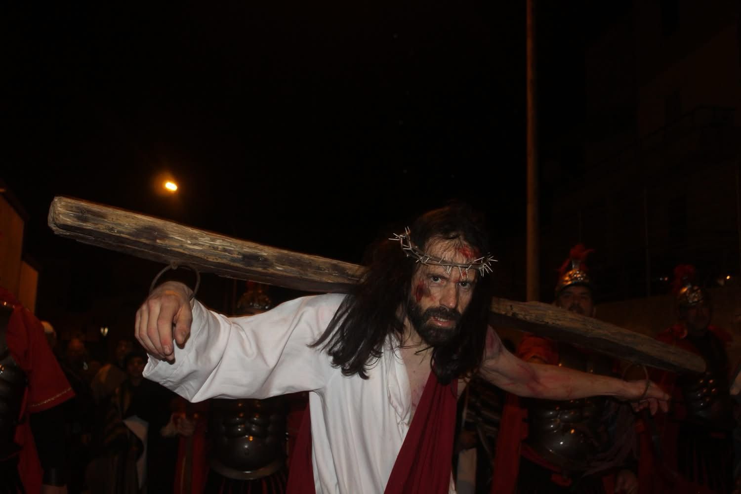 Un evento unico nel suo genere, tra le manifestazioni culturali e religiose più importanti e rappresentative della Città; è stato soprattutto un richiamo di spettatori che, da tutta la provincia e oltre, hanno ammirato la Sacra rappresentazione, realizzata con attori del popolo, su uno scenario vario, spettacolarmente e imponente con la fedeltà storica delle ricostruzioni sceniche dell’antico Castello, in grado di mutare letteralmente l’aspetto di vie e piazze del paese. Ha calamitato l’attenzione di numerosi volontari e delle parrocchie SS. Pietro e Paolo e S. Teresa d’Avila stupendo per il valore aggiunto conferito dalle luci, suoni e rumori indispensabili al fine di calare il pubblico nel tempo e nei luoghi della crocefissione di Gesù Cristo.