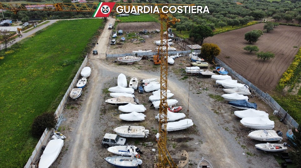 Nel corso delle continue attività finalizzate alla prevenzione e contrasto degli illeciti in materia ambientale i militari della Capitaneria di porto – Guardia Costiera hanno individuato un’area recintata in muratura ed accessibile mediante un cancello carrabile all’interno della quale erano presenti numerosi natanti ed imbarcazioni, una gru e mezzi meccanici atti alla loro movimentazione.
