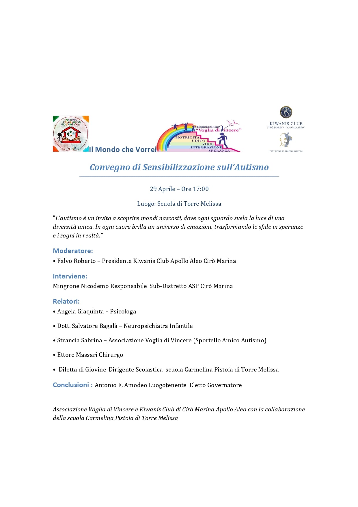 Il 29 aprile alle ore 17:00, presso la Scuola di Torre Melissa, ci incontreremo per guardare oltre, per ascoltare storie vere, professionisti, famiglie e scuole che ogni giorno costruiscono ponti invece di muri.