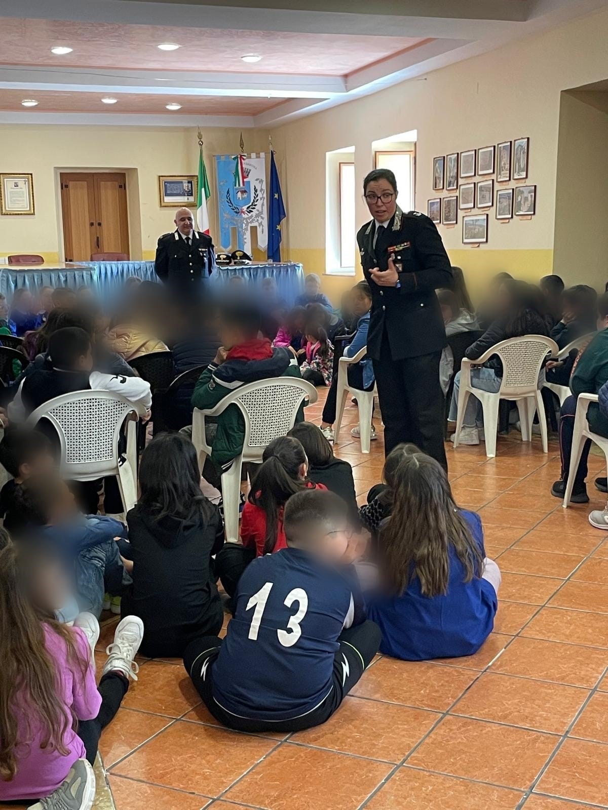 Nella mattinata del 29 aprile circa 100 alunne e alunni della scuola primaria e secondaria dell’Istituto Comprensivo di Rocca di Neto dei plessi di Casabona hanno incontrato insieme ai loro insegnanti, presso la sala consiliare del Comune, il Comandante della locale Stazione Carabinieri, Mar.Ord. Gianluca Lumare, e il Comandante della Compagnia di Crotone, Magg. Rossella Pozzebon.