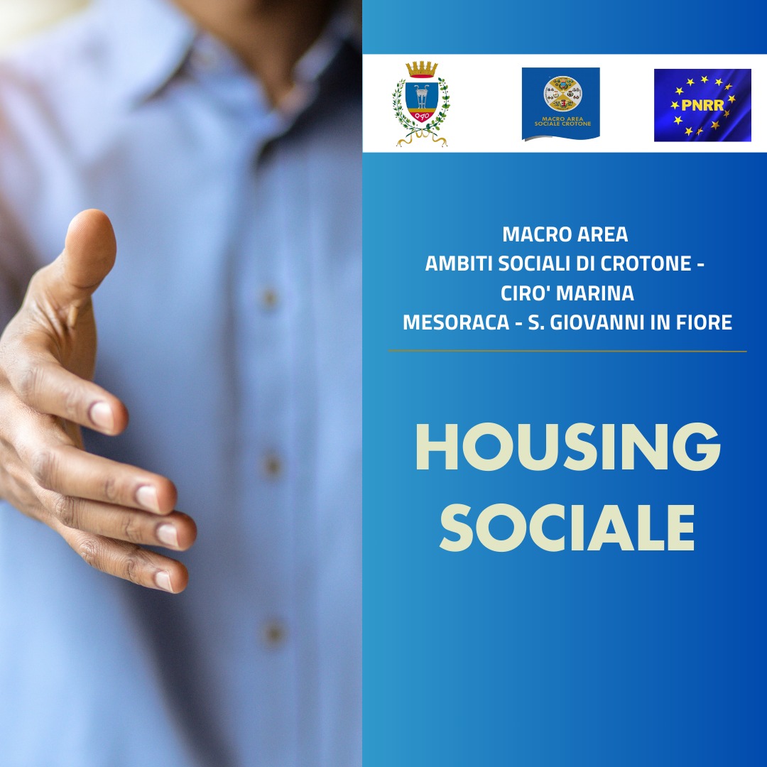 Sono stati attivati i servizi di “Housing sociale” strutturati su un finanziamento PNRR ottenuto dal comune di Crotone, capofila di una intera macroarea di cui sono parte i 4 ambiti di sociali che coprono tutti i comuni della provincia di Crotone, ovvero il distretto socio assistenziale di Crotone, di Cirò Marina, di Mesoraca e di San Giovanni in Fiore.