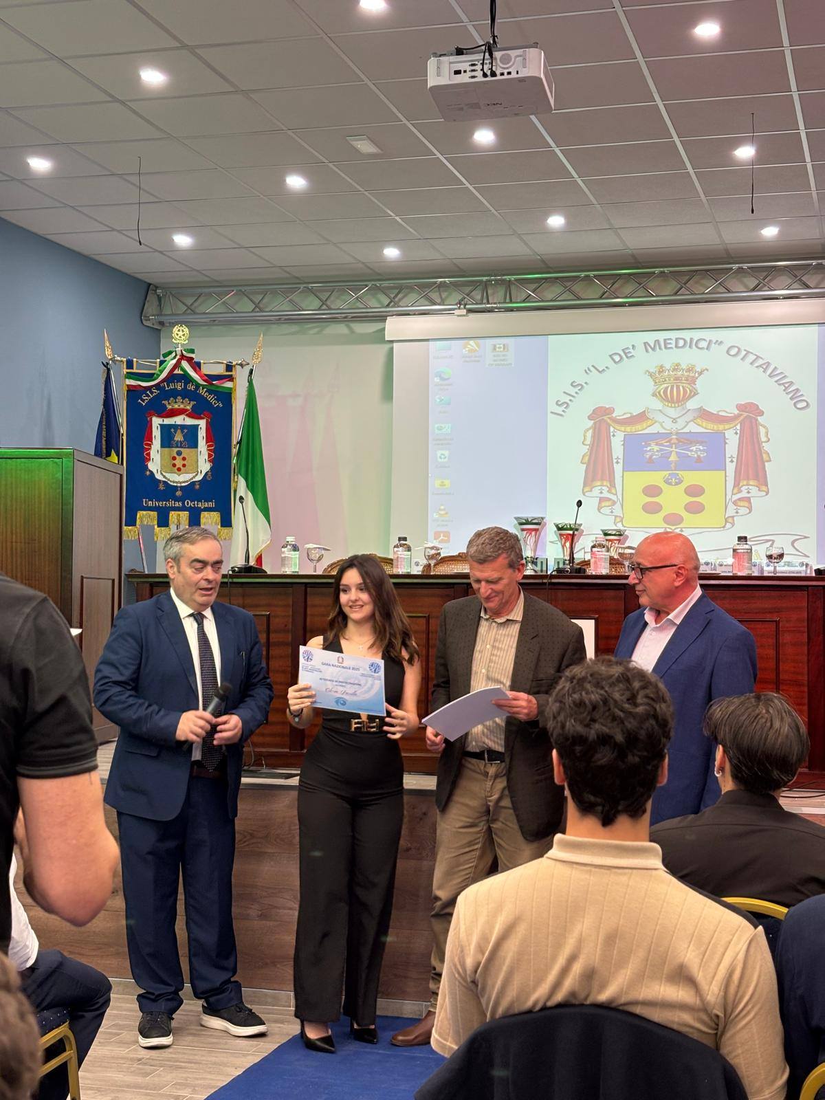 La cerimonia di premiazione si è svolta in serata presso l’Istituto Alberghiero “Luigi Dé Medici” di Ottaviano, che ha curato con professionalità l’organizzazione dell’evento conclusivo. Al termine della premiazione – che ha visto salire sul podio l’IPS “Principi Grimaldi” di Modica (1° posto), l’IIS “E. Fermi” di Pieve di Cadore (2° posto) e l’IIS “G. Plana” di Torino (3° posto) – è seguito un elegante aperitivo e una piacevole cena fra tutti i partecipanti.