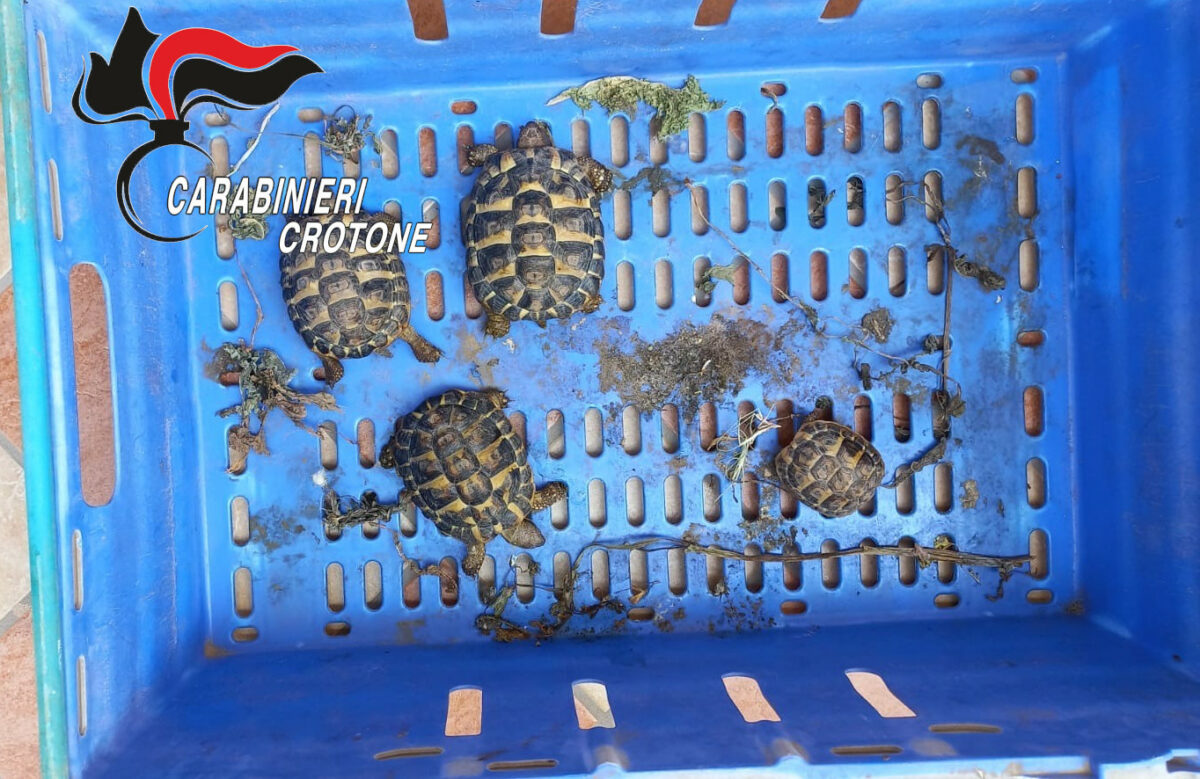 All’esito del servizio sono state trovate e sequestrate 4 tartarughe Testudo Hermanni, una specie protetta e a rischio di estinzione, illegalmente detenute dai soggetti controllati.