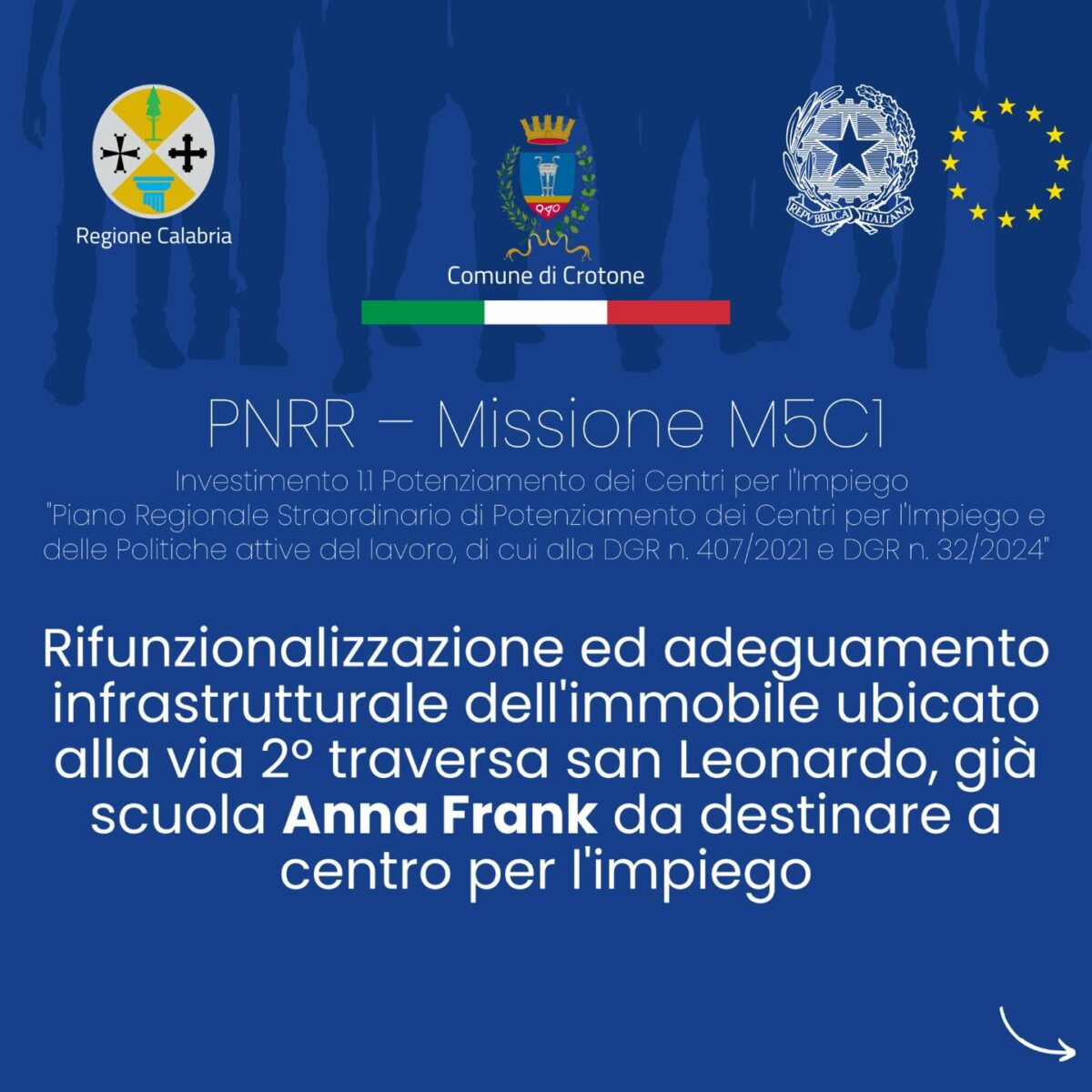 Crotone, ex scuola “Anna Frank” rinasce: al via i lavori per il nuovo Centro per l’Impiego grazie ai fondi PNRR