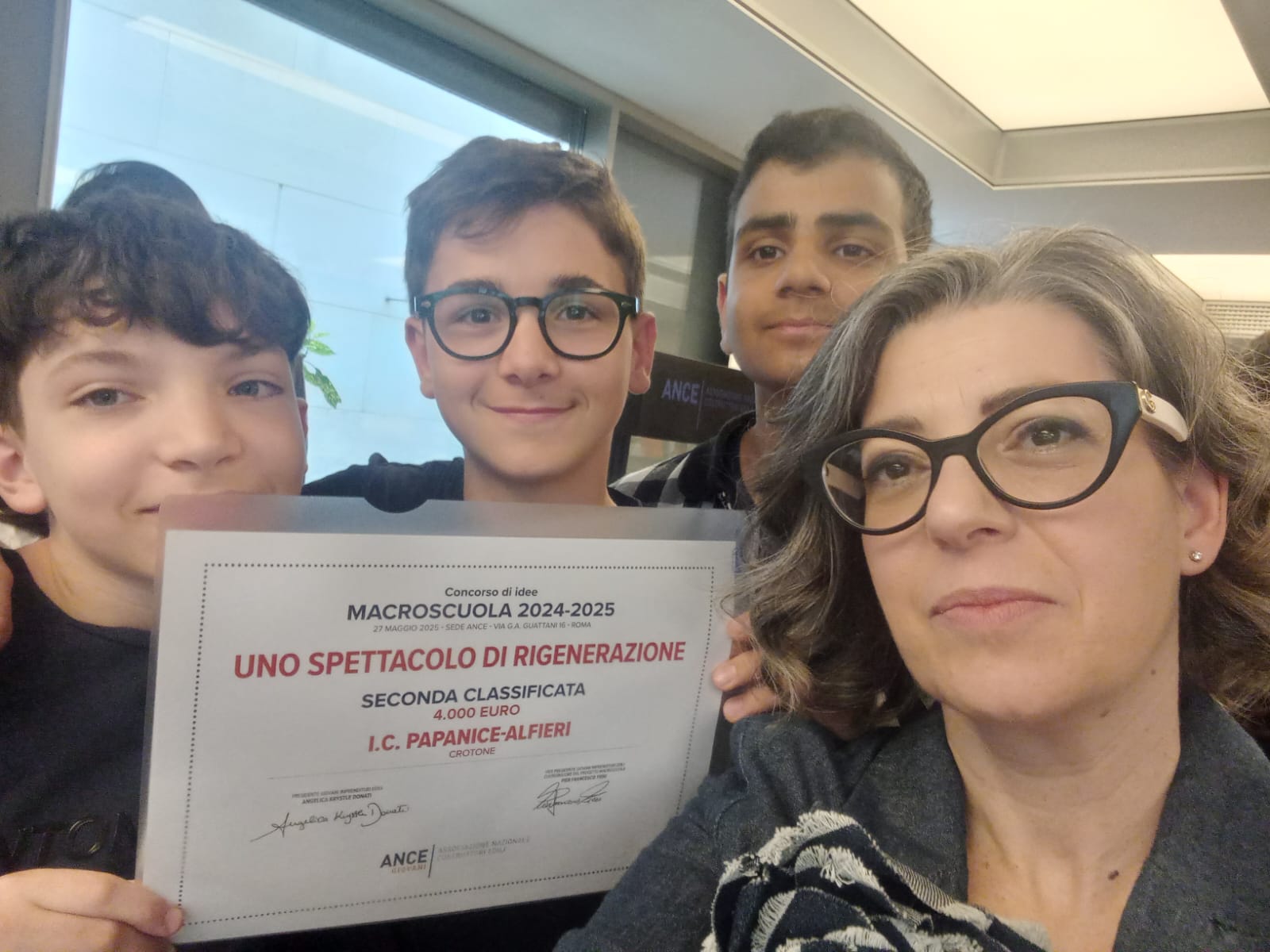 Il progetto vincente, intitolato “Green Kroton Park”, è stato presentato nella mattinata di oggi, durante la cerimonia di proclamazione svoltasi presso la sede nazionale ANCE a Roma. A rappresentare l’Istituto calabrese, unico finalista della regione, erano presenti la docente di Tecnologia prof.ssa Anna Chirumbolo, che ha guidato gli studenti nella progettazione, e una delegazione della classe 2ª C della scuola secondaria di primo grado, plesso Alfieri, composta dagli alunni Mattia Bevilacqua, Cristian Pignalosa e Ajkam Singh.