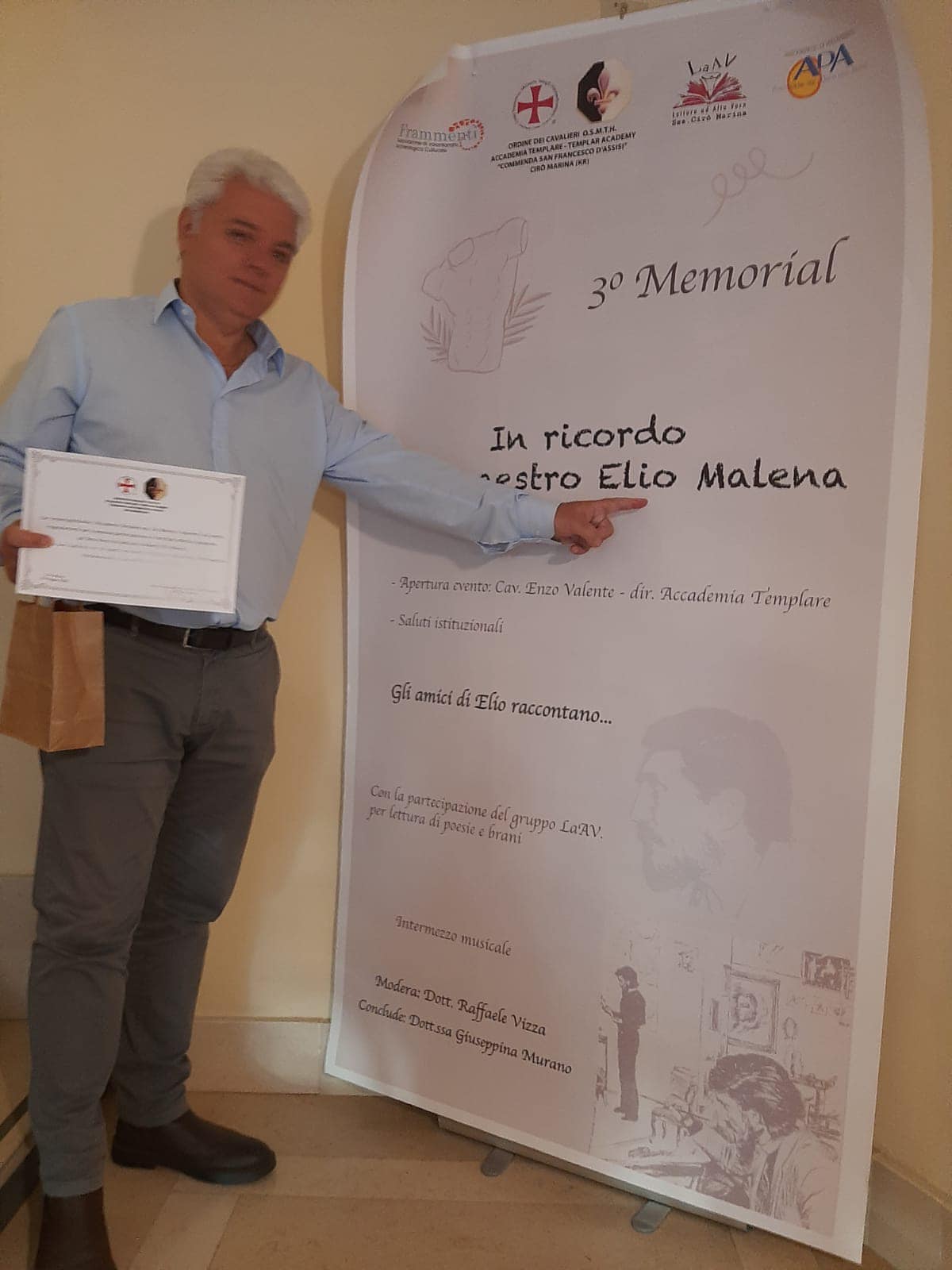 Un grande successo ha accompagnato il memoriale dedicato al Maestro Elio Malena, organizzato con passione e dedizione dall’Accademia Templare “San Francesco d’Assisi”, guidata dal Direttore Enzo Valente, conosciuto affettuosamente come “Enzo Sport”, e dal moderatore Cavaliere Raffaele Vizza.