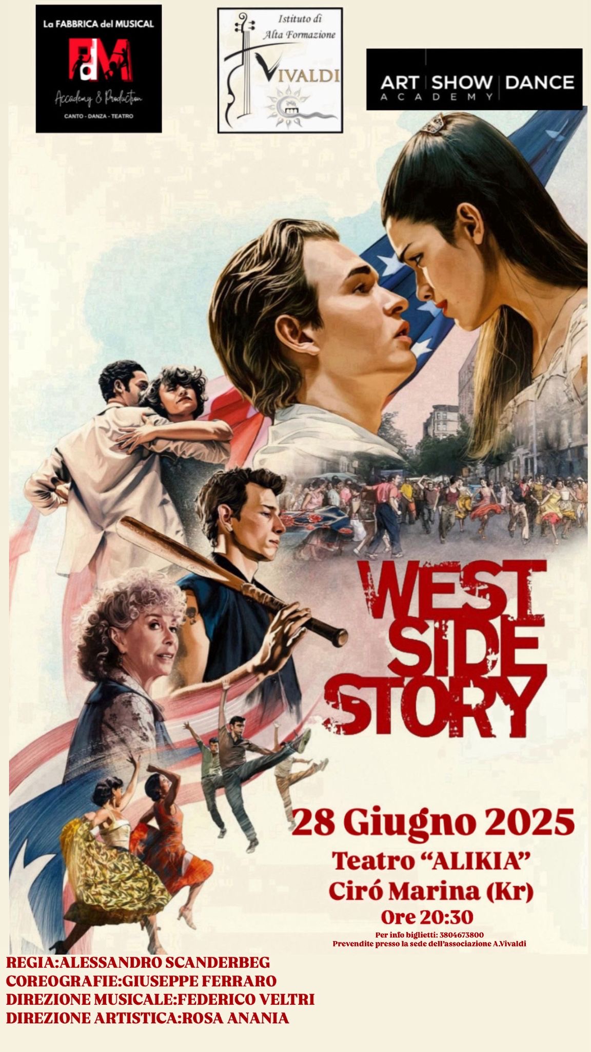 Dopo mesi di intensa preparazione, passione e prove senza sosta, l’associazione A. Vivaldi è pronta a portare in scena uno dei musical più amati e iconici di sempre: “West Side Story”. Il sipario si alzerà venerdì 28 giugno 2025 alle ore 20:30, dando vita a una serata all’insegna dell’arte, dell’emozione e dello spettacolo.