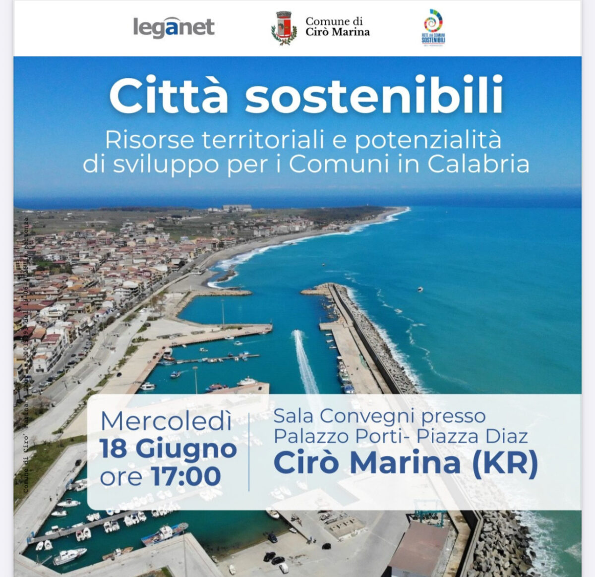 La Calabria si prepara a riflettere sulle nuove sfide dello sviluppo locale con l’evento “Città sostenibili – Risorse territoriali e potenzialità di sviluppo per i Comuni in Calabria”, che si terrà mercoledì 18 giugno alle ore 17:00 presso la Sala Convegni di Palazzo Porti, nel cuore di Cirò Marina. Un’occasione di confronto concreta tra istituzioni, tecnici e cittadini per discutere di sostenibilità, tutela ambientale e valorizzazione delle risorse locali.