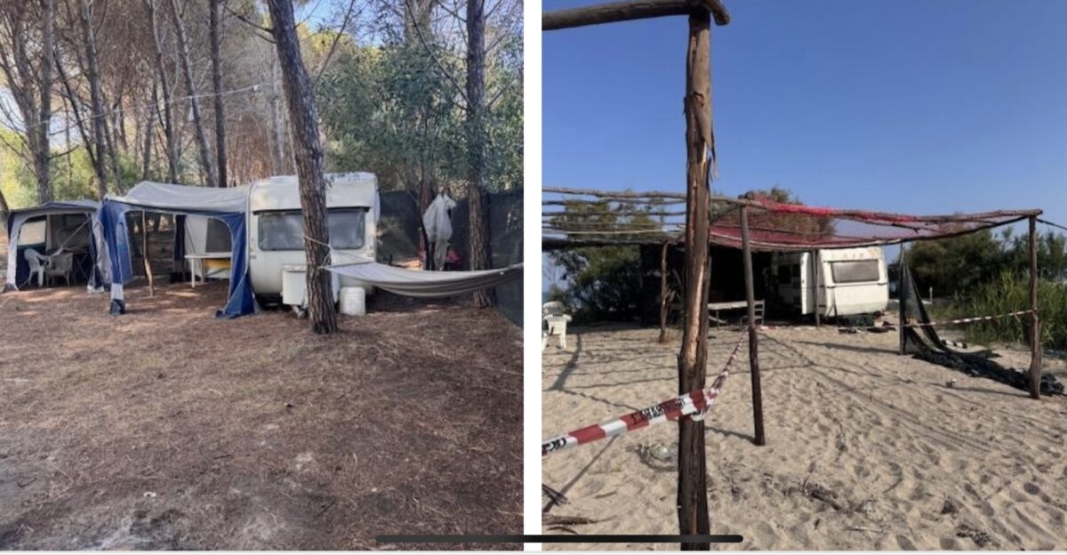 Durante l’attività di controllo sono state sequestrate due aree adibite illegalmente a campeggio nelle quali sono stati rinvenuti:roulotte, tavoli, sedie, amache. Individuati due soggetti presunti autori degli illeciti, che sono stati deferiti all’Autorità Giudiziaria per deturpamento di bellezze naturali, attività di gestione di rifiuti non autorizzata, violazioni ai sensi del Codice dei Beni Culturali e del Paesaggio e del Testo Unico dell’Edilizia.
