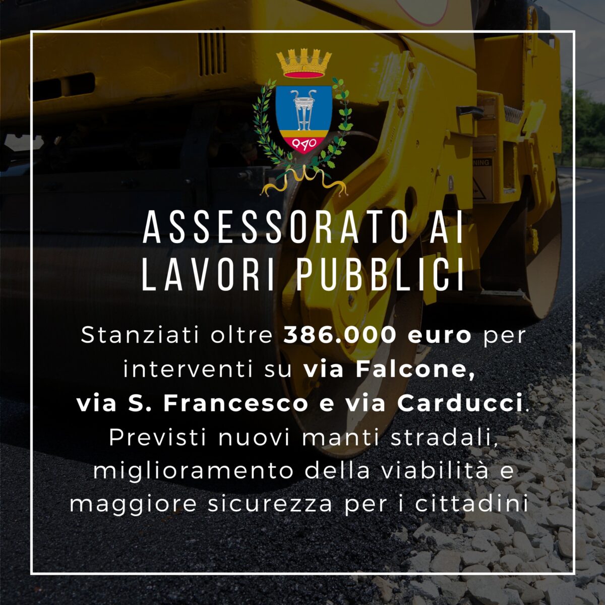 Si tratta di un finanziamento disposto con provvedimento di Giunta Comunale per l’importo di 196.000 euro con il quale si andrà a riqualificare l’asse viario di via Giovanni Falcone e di via S. Francesco.