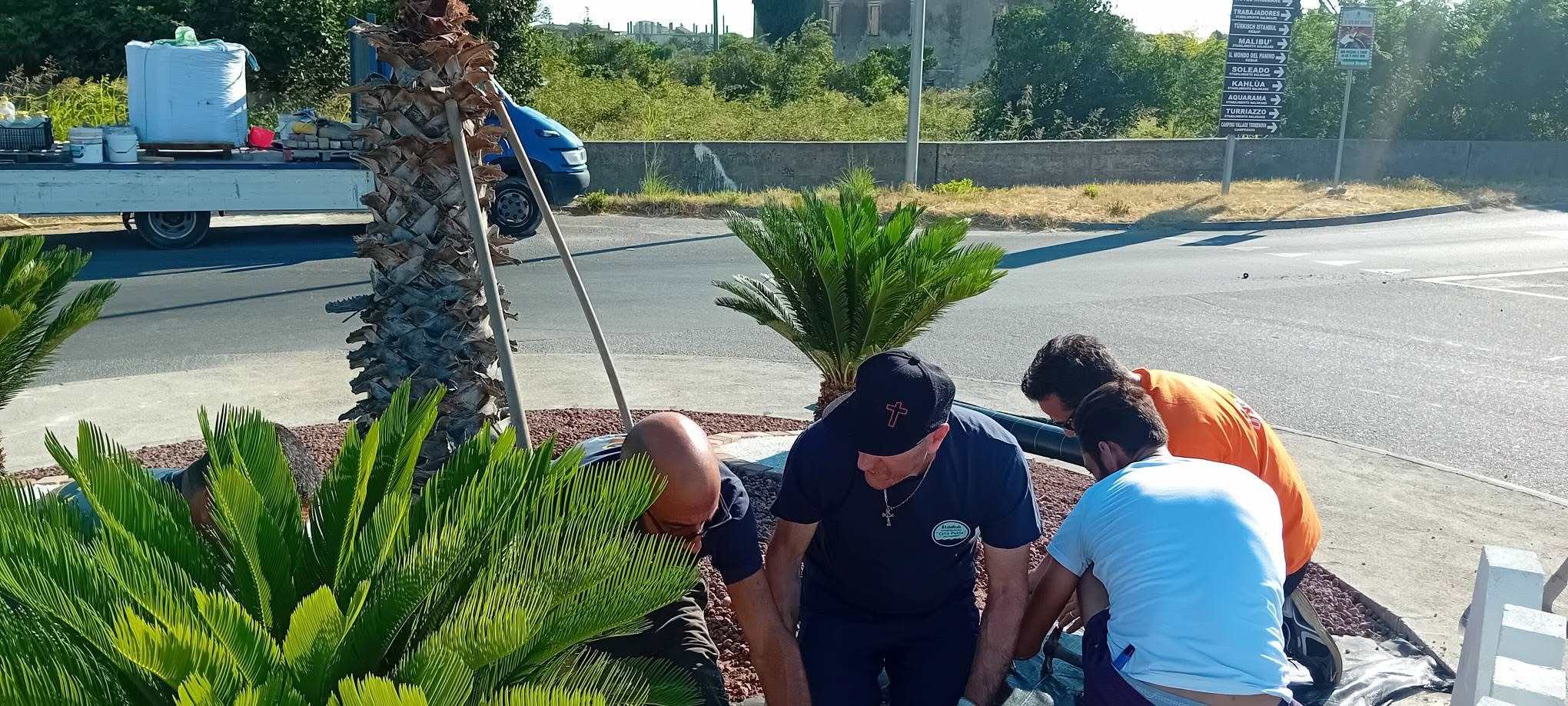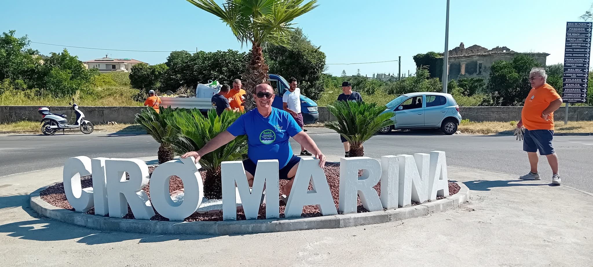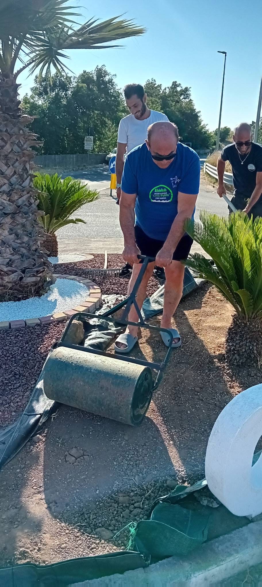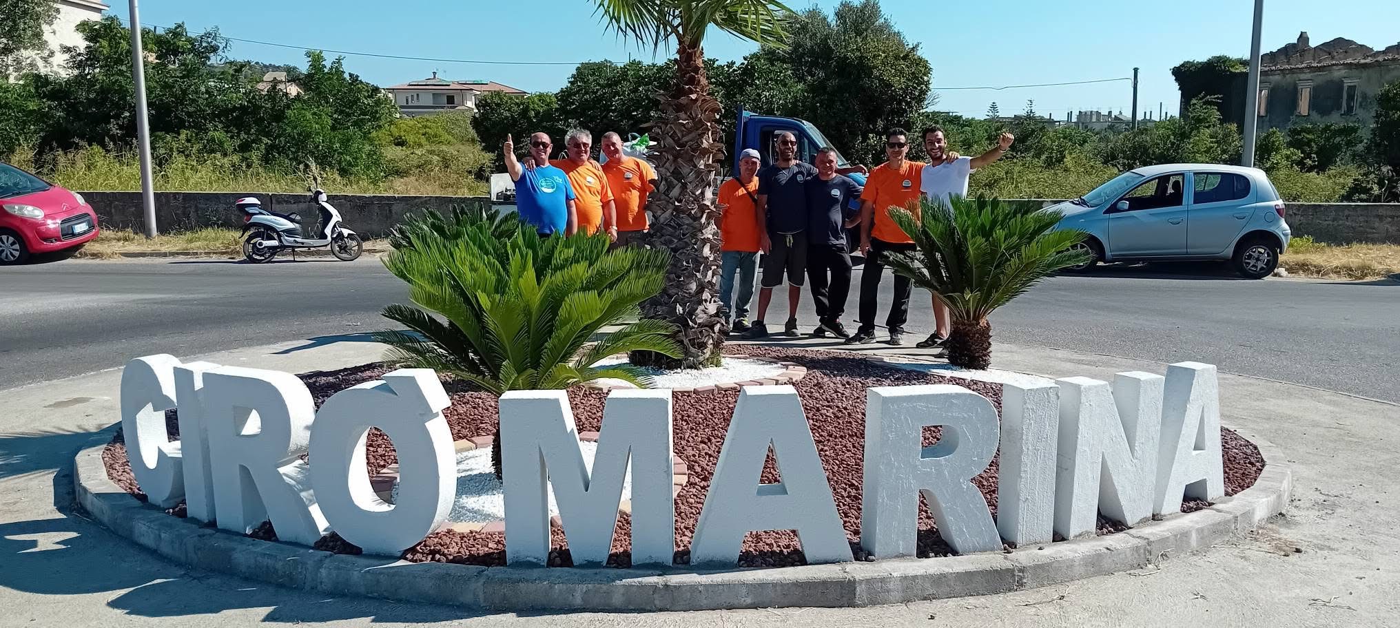 Il progetto è stato reso possibile grazie alla collaborazione con il Comune di Cirò Marina, che ha fornito i materiali fondamentali per la sistemazione estetica dell’aiuola, tra cui argille, lapilli e betonelle. Fondamentale anche il contributo del 5×1000, che ha permesso all’associazione di acquistare il telo antiradice, i chiodi, il cemento e la grande scritta bianca “CIRÒ MARINA” che ora campeggia al centro della rotonda, incorniciata dal verde delle palme e delle cycas.